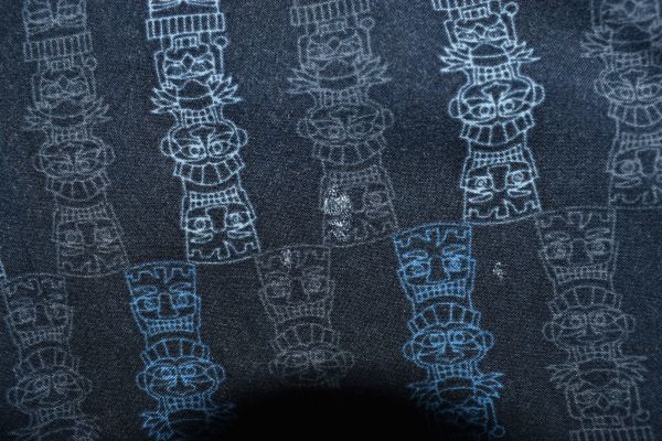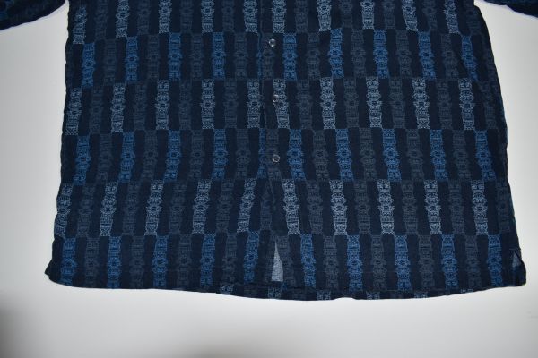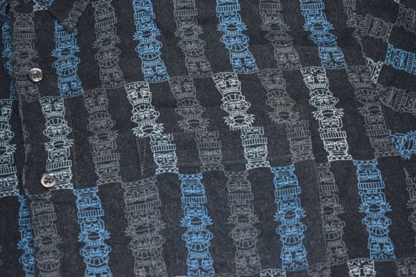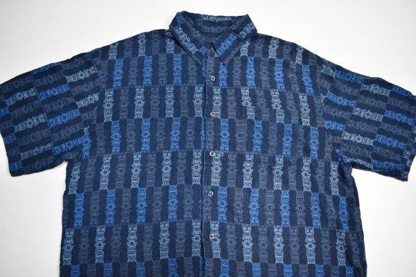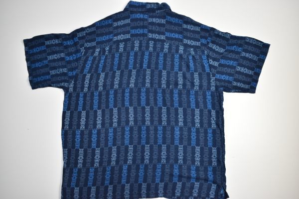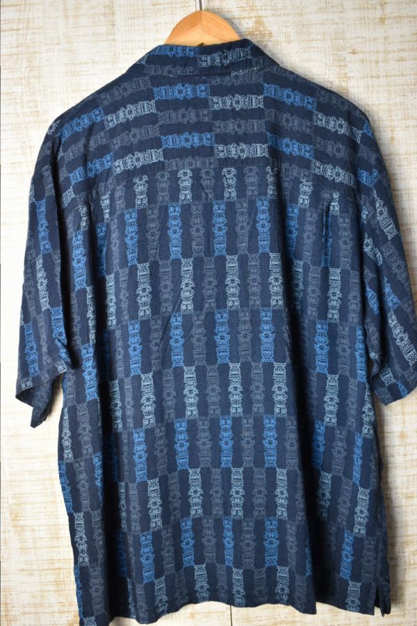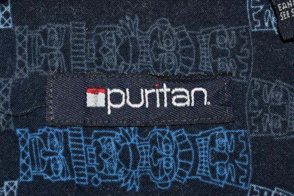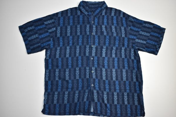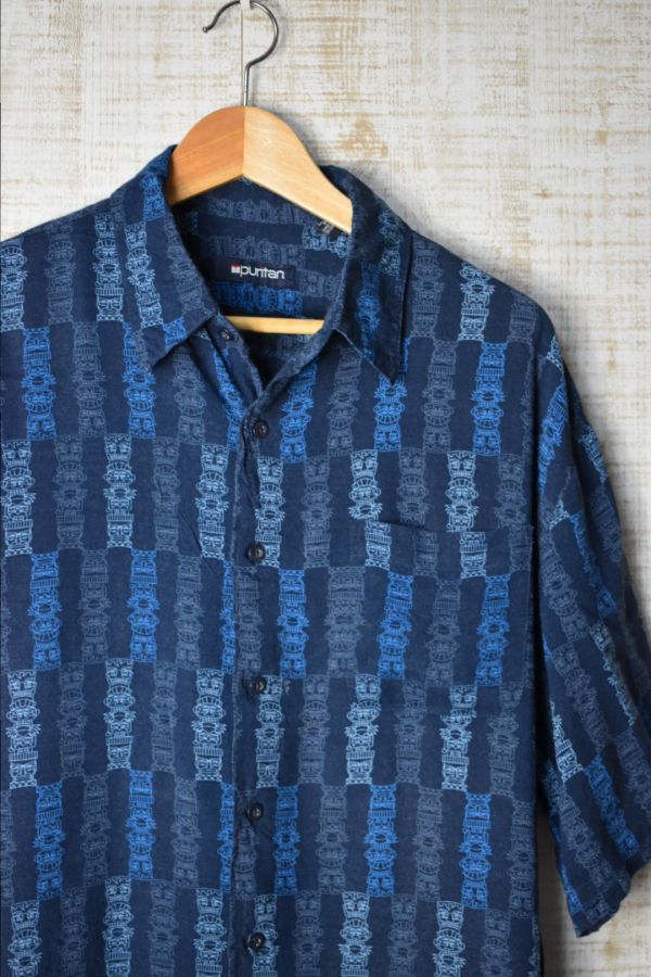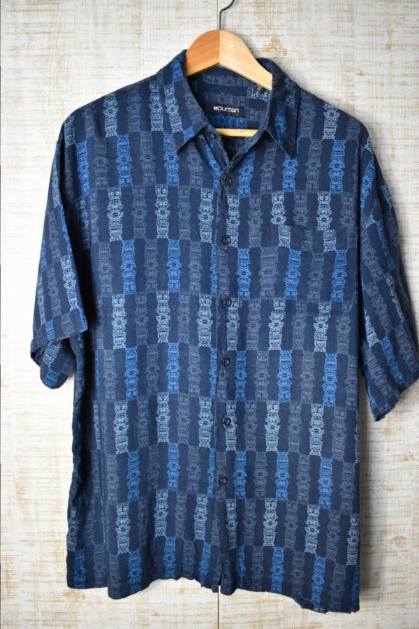 ●US USED Puritan アロハシャツ 柄シャツ 総柄 ネイビー紺 デザイン柄プリント【L】