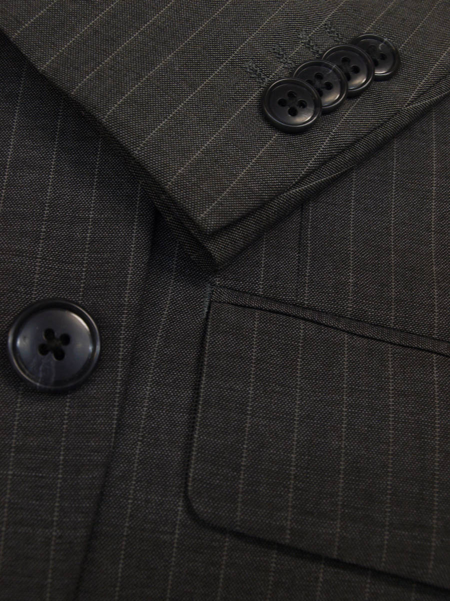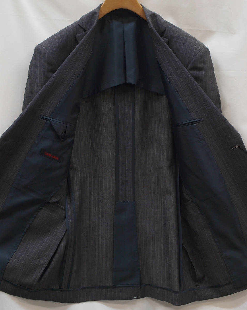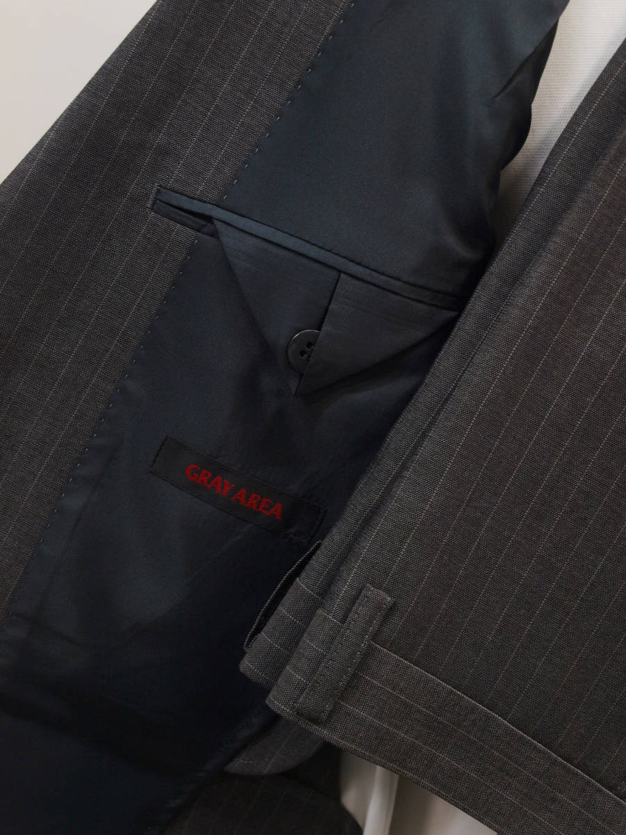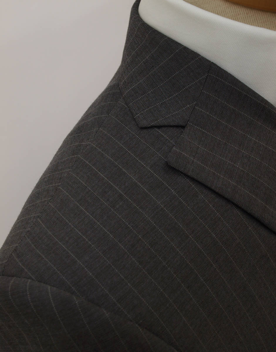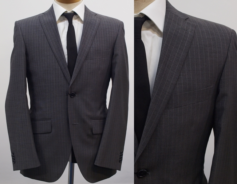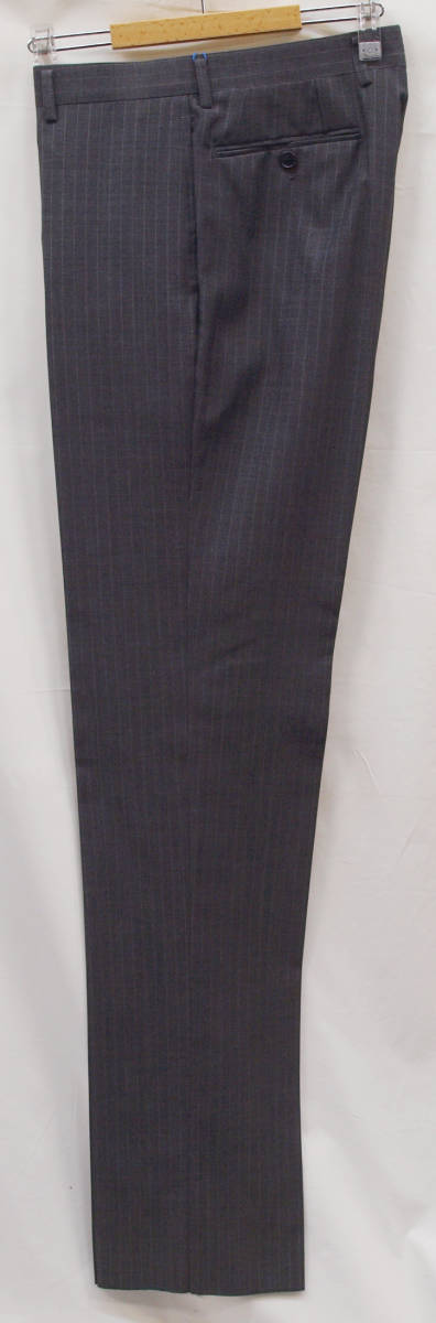 【サイズ】 Y6(YL、YA6号サイズ相当) 目安の体型 身長170cm~180cm、ウエストサイズ78cm前後 【ジャケット実寸】 肩幅45.5cm 着丈73.5cm 袖丈63cm 脇下部分49cm 身幅45cm 【パンツ実寸】 ウエスト(胴回り実寸)78cm わたり幅32cm(股下10cmの部位で30cm) 裾幅21.5cm 脇股上25.5cm 前股上28.5cm 股下93cm(裾上げしていない状態/新品) 【素材】 表地:ウール69% ポリエステル5% トリアセテート19% 裏地:胴裏/ポリエステル100% 袖裏/ポリエステル100% 春夏ものの中でも薄手で軽い紳士スーツ用、春夏向けウールブレンド素材を使用 【色】 茶色がまざったミックスグレー 【柄】 ピンヘッド織地に1cm間隔でラインがはいったストライプ柄 【デザイン】 ほどよいゆとりのある着用感のシングル2つボタンスーツ、レギュラータイプのビジネススーツ新品、裾上げしていない状態です。 ・ジャケットはシングル2つボタンでベーシックレギュラーモデル ・パンツは股上は浅くなく普通ですっきりシルエットレギュラーフィット、ノータックパンツ 春~夏~秋口にかけて春夏メインのシーズン対応商品。 【縫製仕様】 ・ジャケットはシングル2つボタン、ノッチドラペル、袖口ボタン4つ、センターベント、内ポケット2つ、背抜き(春夏物) ・パンツはノータック、膝裏地付き、脇ポケット縦付け、後ろポケット両玉縁で左のみボタン付き、フロントはファスナーでホック仕様/うちかけボタンあり きちんとしたビジネススーツの縫製仕様で仕上がっております。