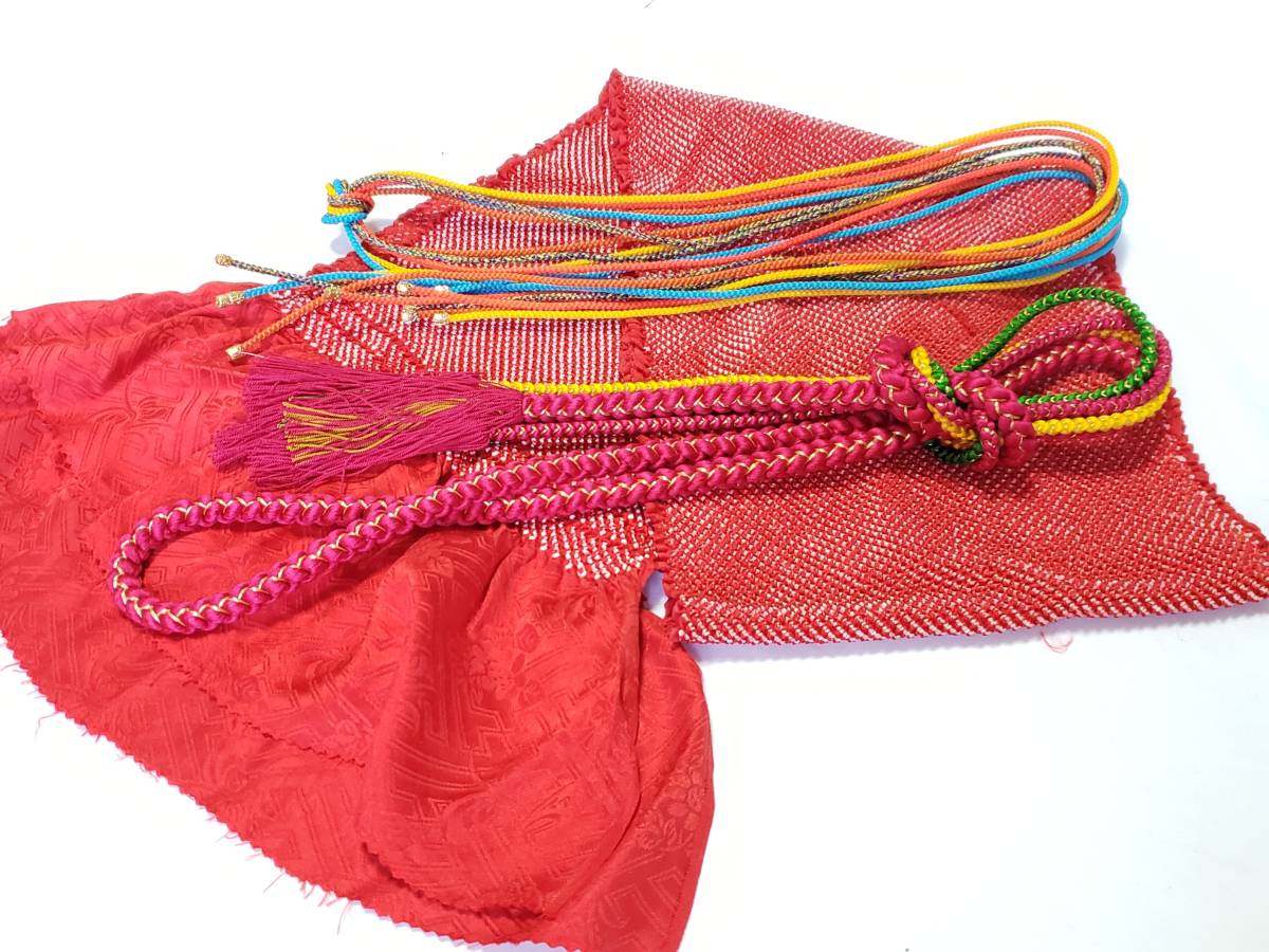 月643 セール SALE! 振袖用 総絞り USED品 赤 帯揚げ帯締めセット 飾りひも付き 最終セール!