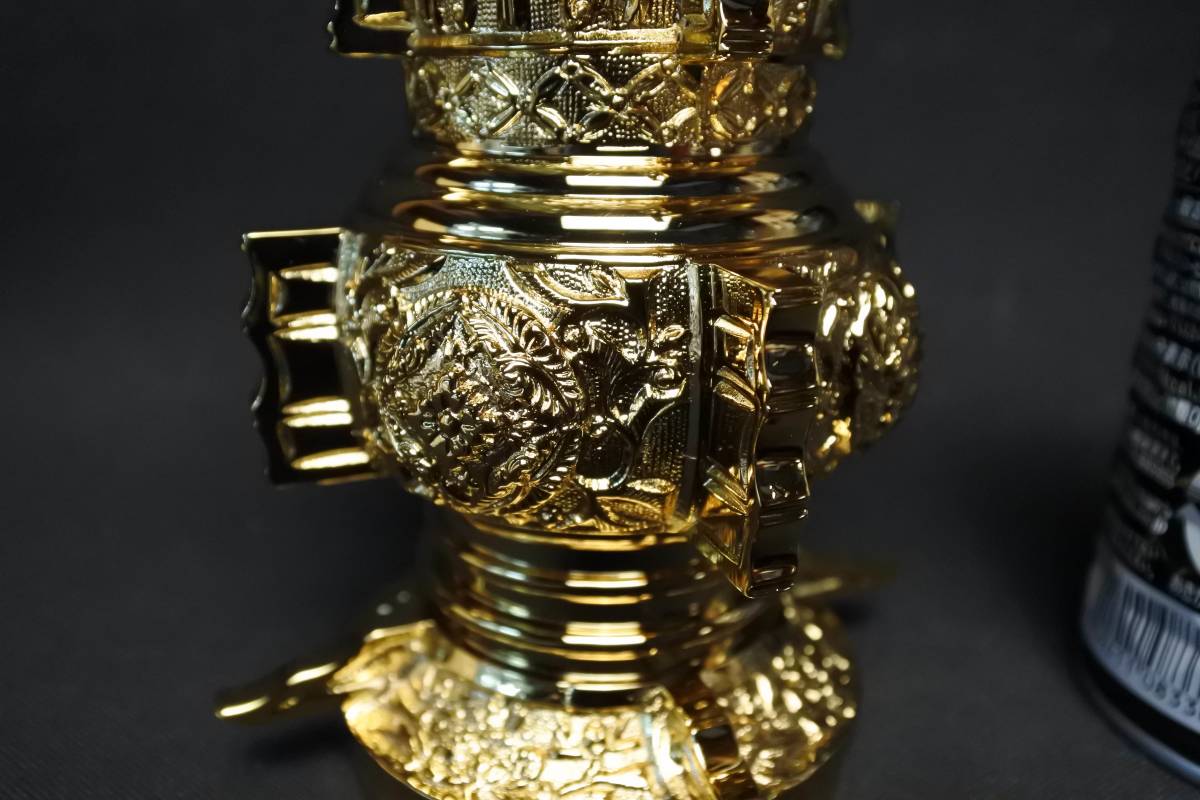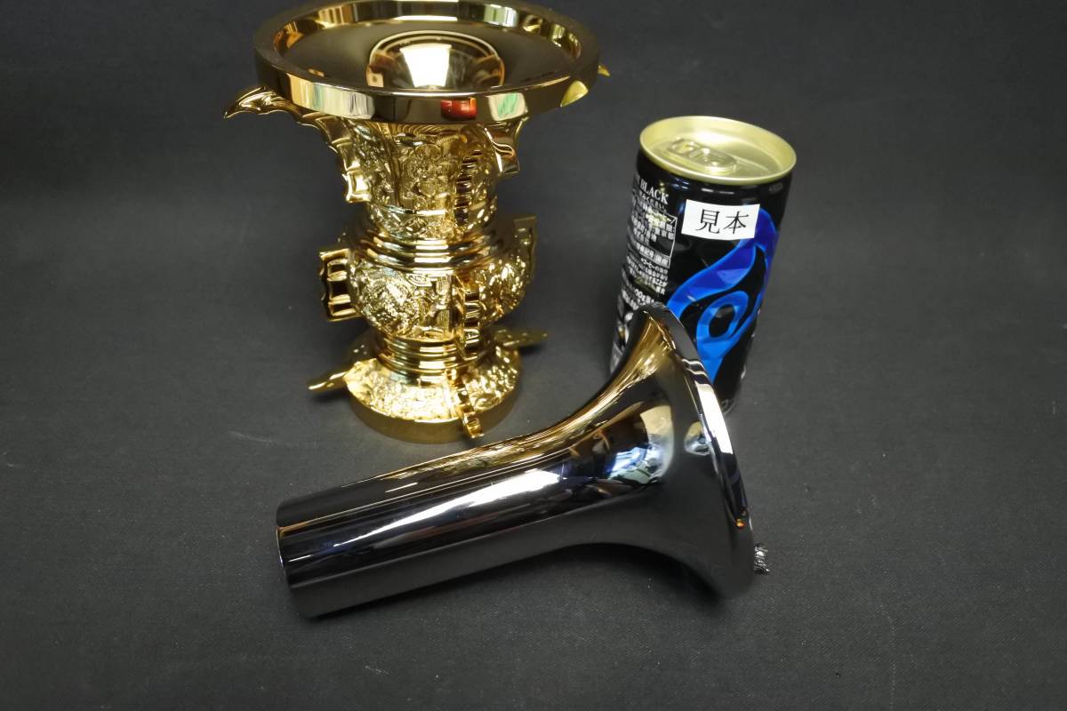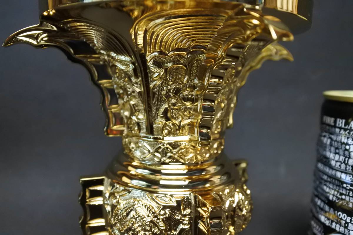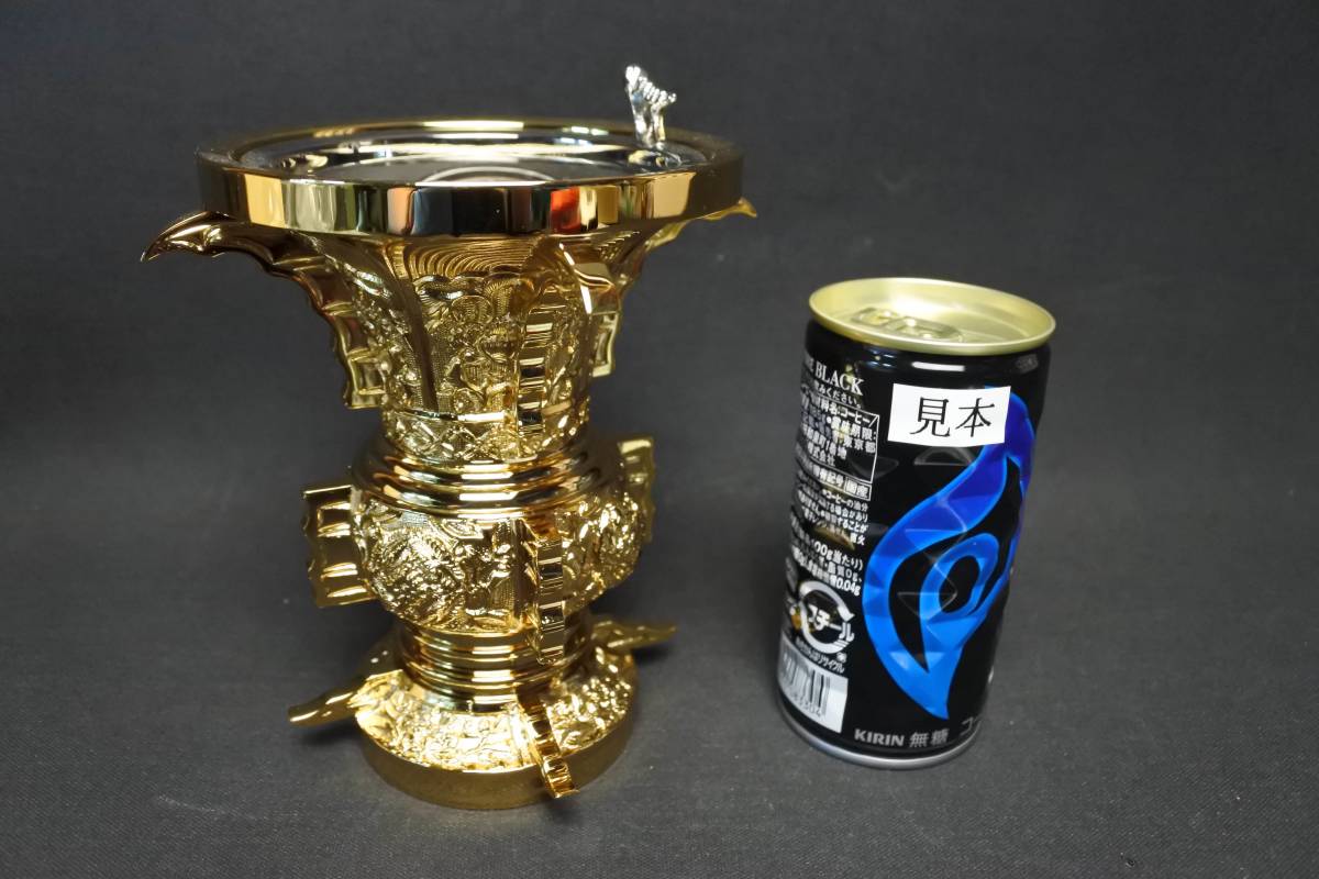 未使用保管品 高岡製 24Kメッキ花立 真鍮 大谷派 東本願寺 仏具 高さ13.8㎝ 幅10.4㎝ |