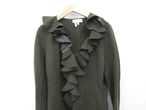 Brunelio ウール フリル ブラウス ダークグリーン S