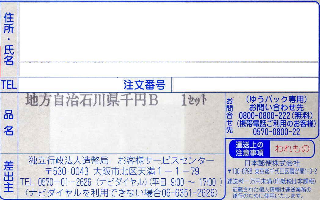 【未開封】地方自治法施行60周年千円銀貨(石川県)Bセット