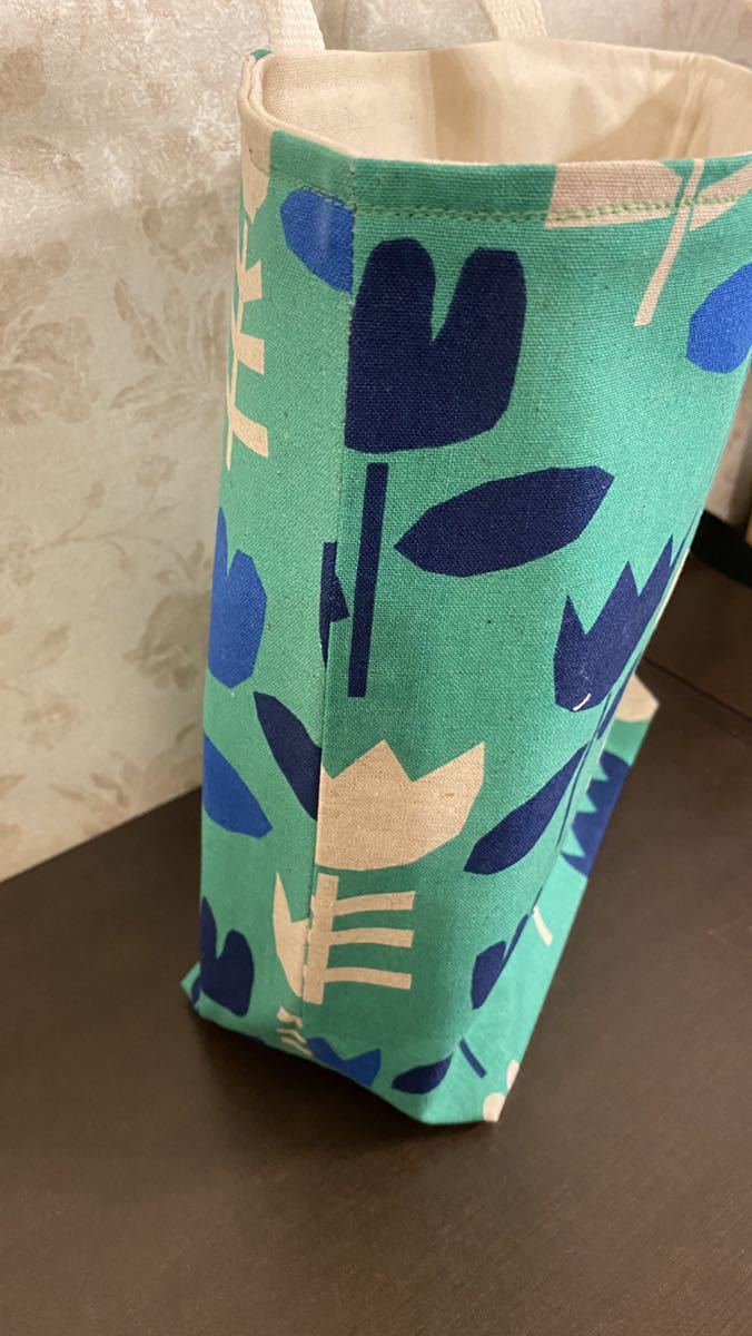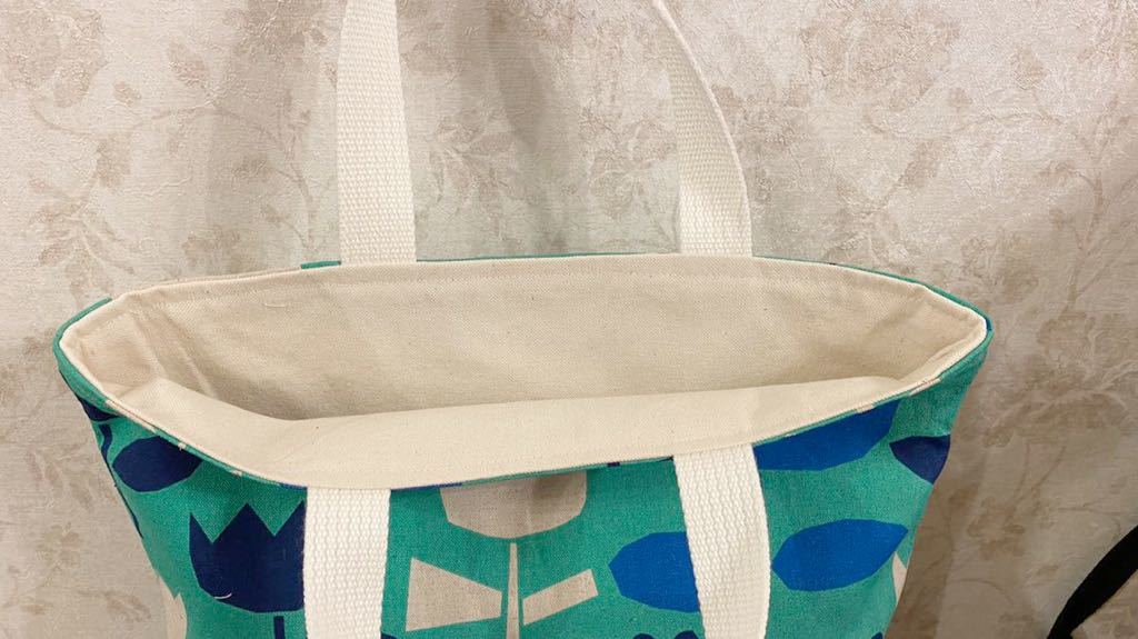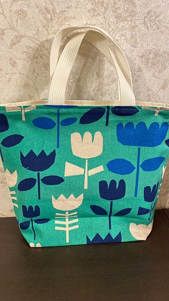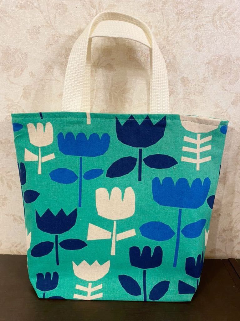 ミニトートバック  ランチバック サブバック お散歩バック  ハンドメイド チューリップ柄 緑色