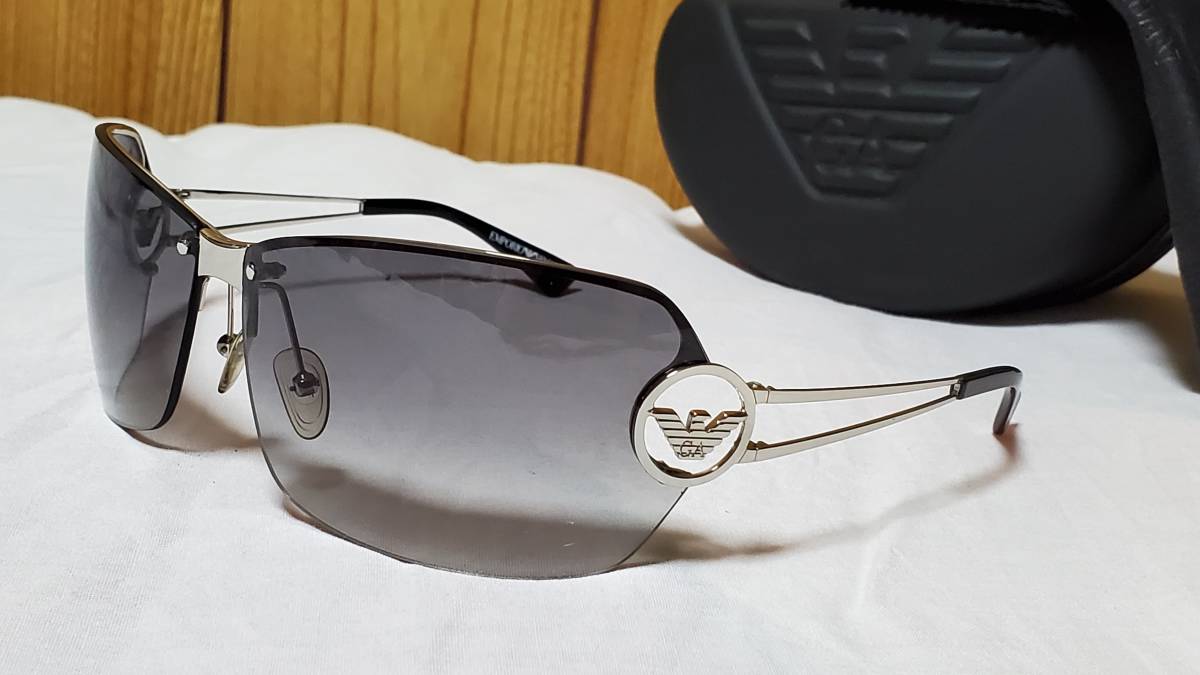 正規未 激レア EMPORIO ARMANI アルマーニ イーグルロゴ メタルフレームサングラス 黒 グラマラス シャイニーシルバー アイウェア 付属有
