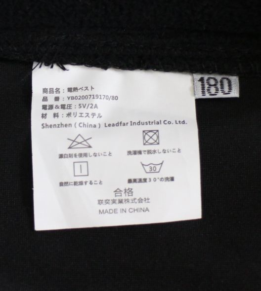 04 00742 ☆ 電熱ベスト ヒーター内蔵 サイズ調整可能 遠赤外線 USB式給電 男女兼用 温度3段階調整 ブラック【アウトレット品】