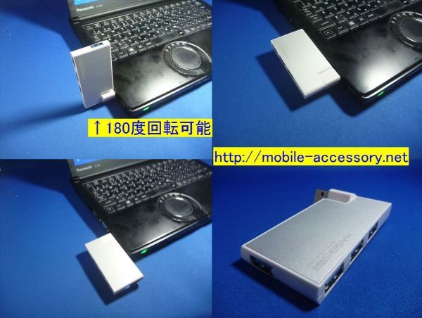 Surface Pro、ノートPCなどに、180度回転ハブ | |