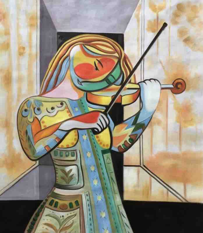 ピカソ祭◆Modern Art◆肉筆☆油絵☆F20号『woman playing violin』ピカソ/模写☆お部屋のイメージ替えに