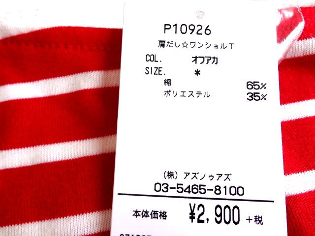 新品 定価2900円 AS KNOW AS PINKY アズノウアズ ピンキー 肩出し ワンショルダー Tシャツ 赤 ボーダー カットソー トップス レディース