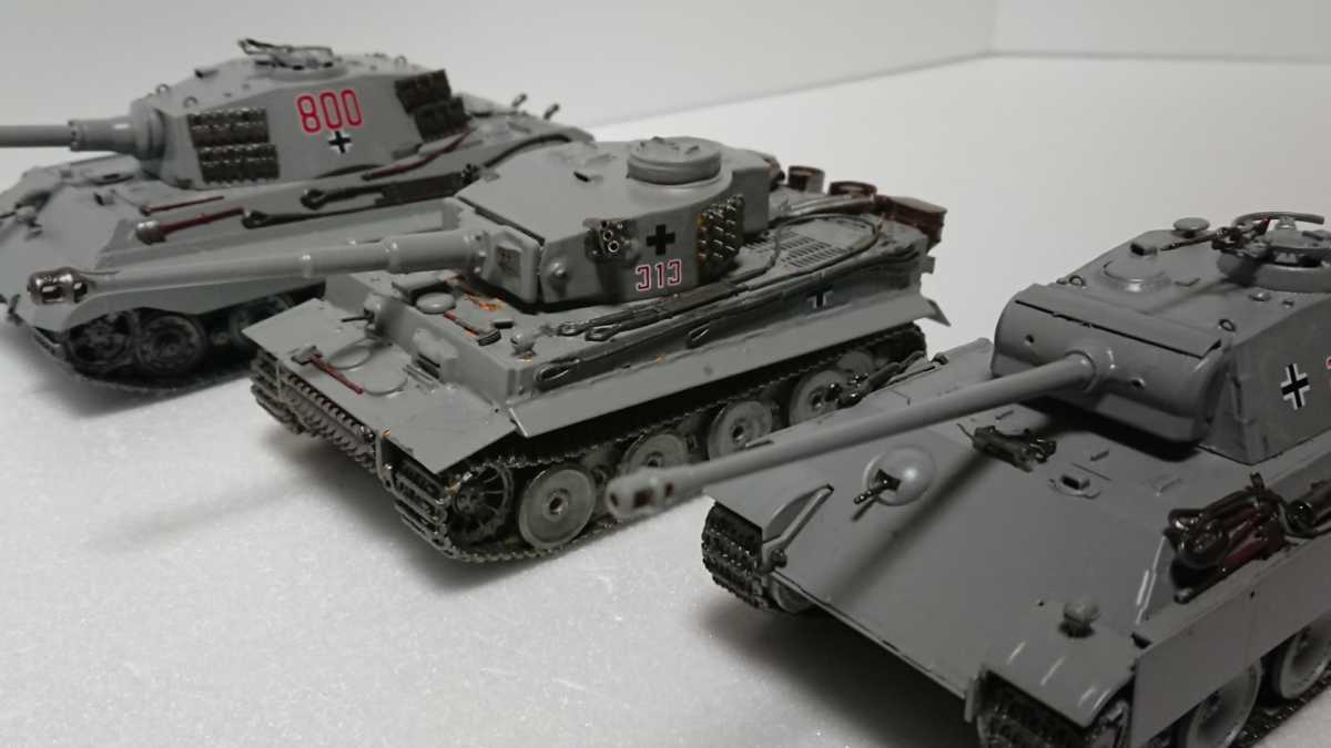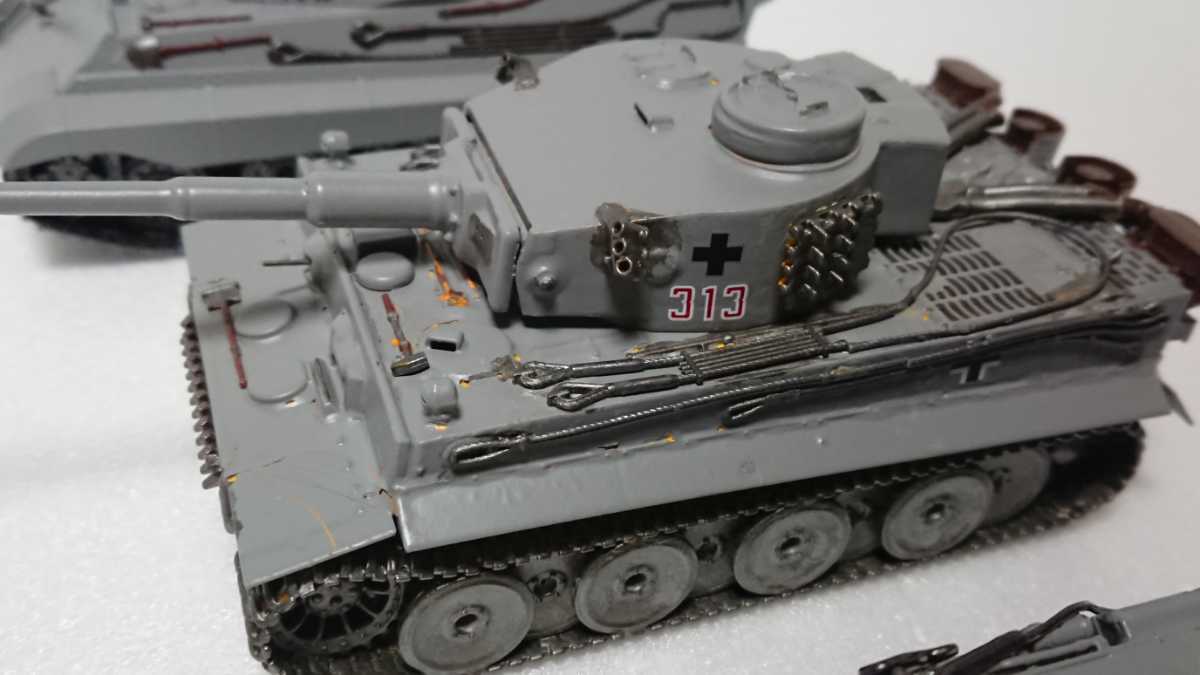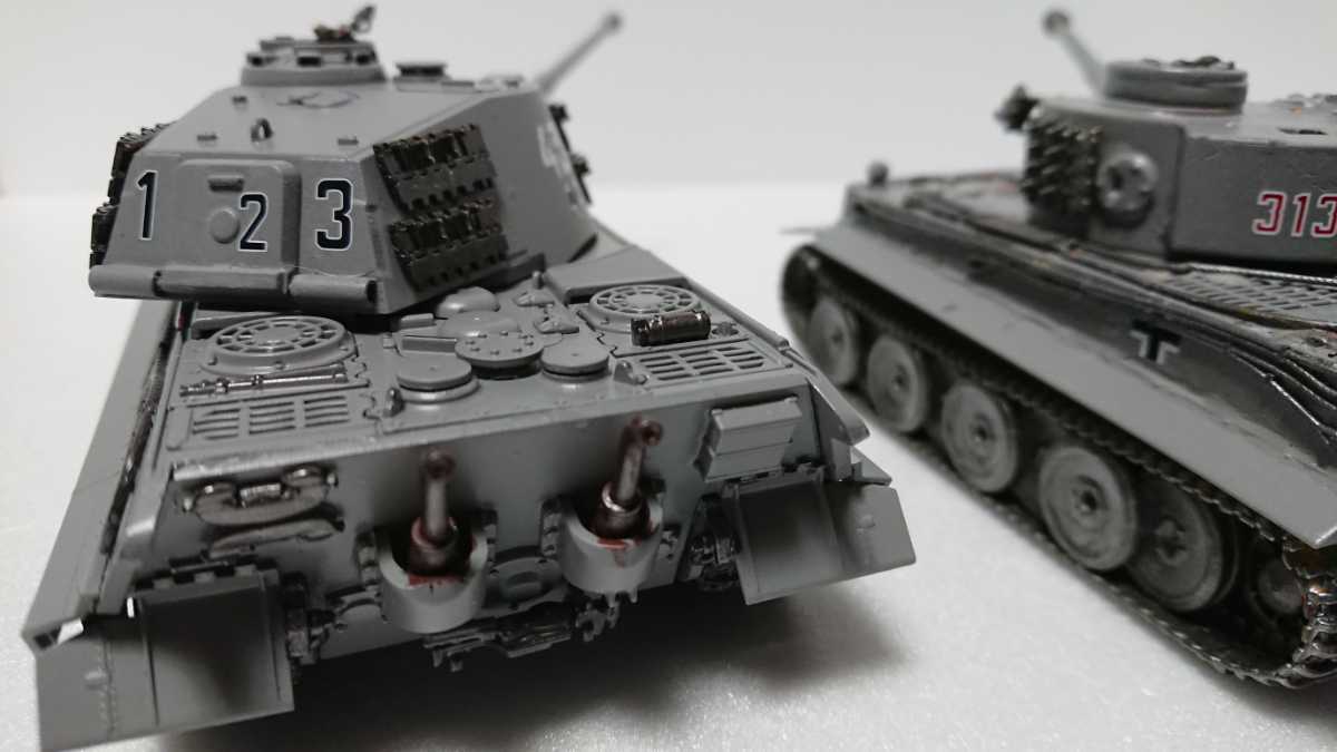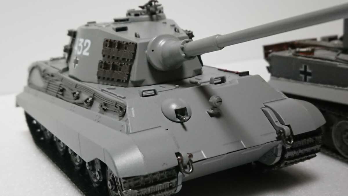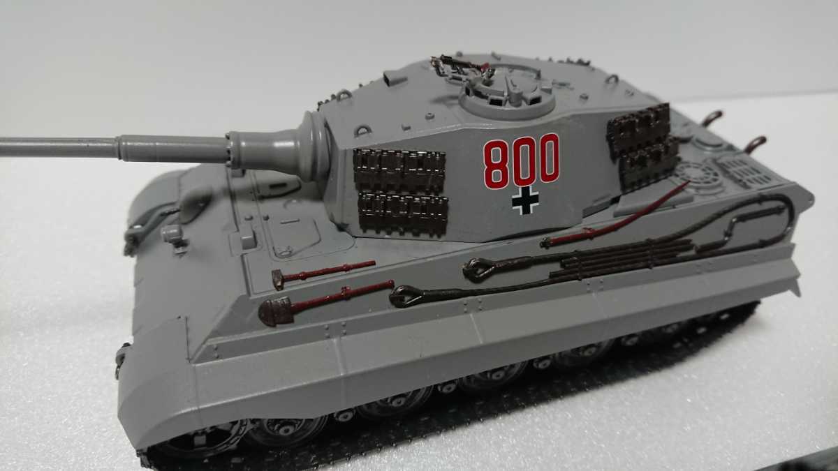 完成品を購入したものです。元々はプラモデルなのかわかりません。キャタピラーや車輪は動きません。キングタイガーの機銃の銃身が折れてますそのでランナーを伸ばして自作してください。