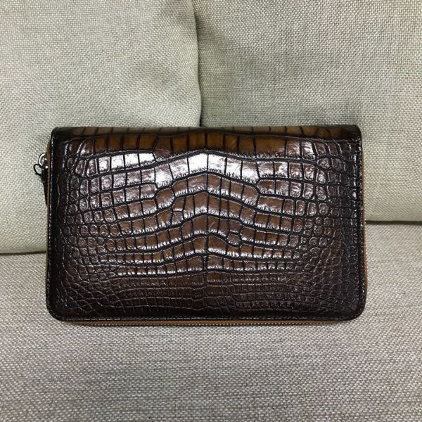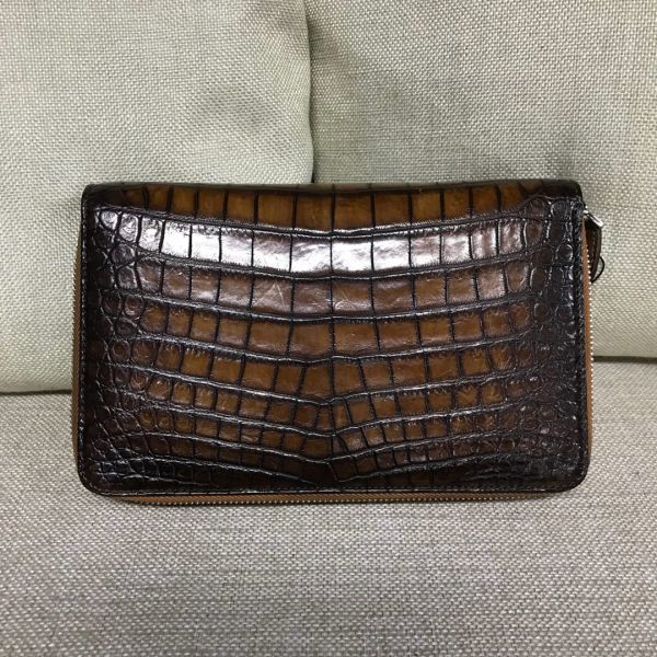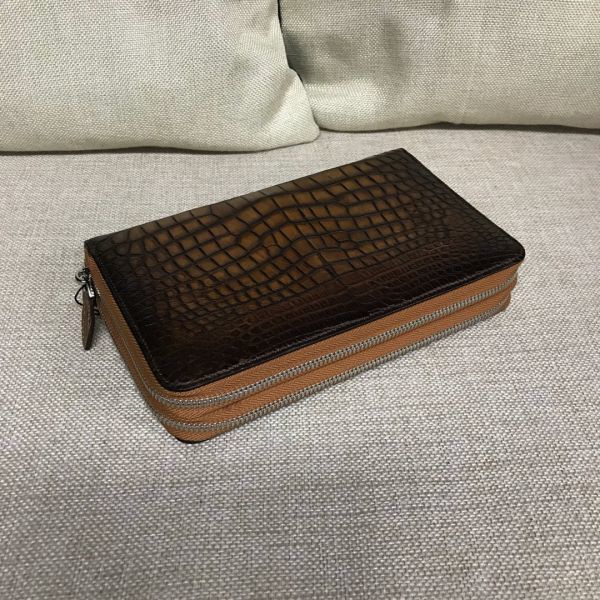 本物のワニ革を使用し、使い込むことにより味が増し、深みのある色に変化していくので光沢の変化も楽しめます。