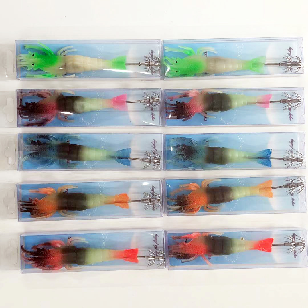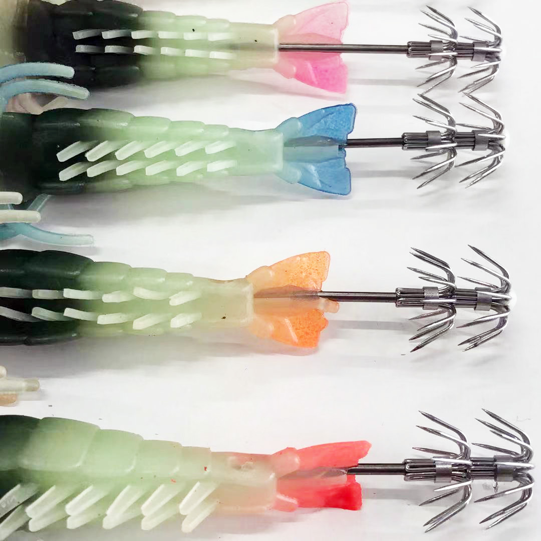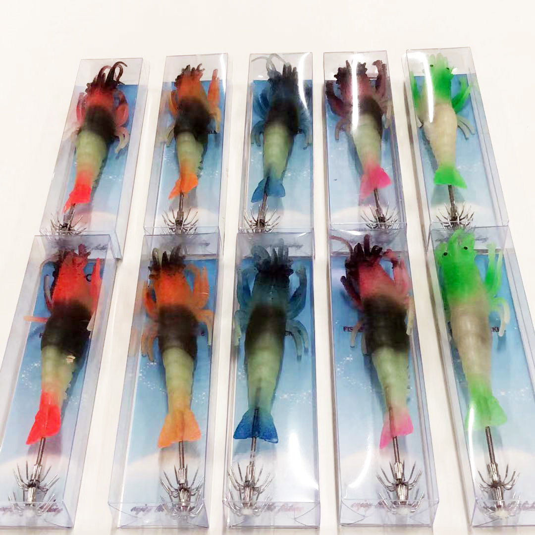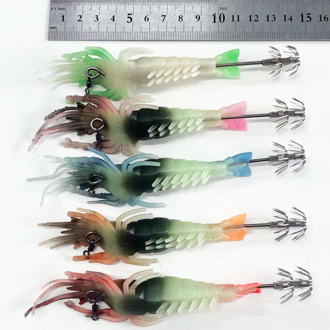 烏賊釣り用 疑似餌 ソフトえび 10本 2段釣り針 イカ釣り 仕掛け セット 訳有 未使用品 wksoftebi10-3