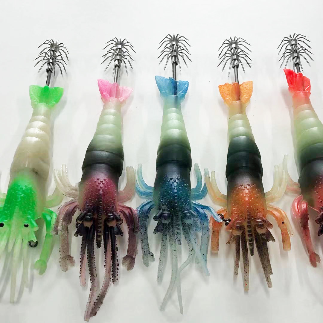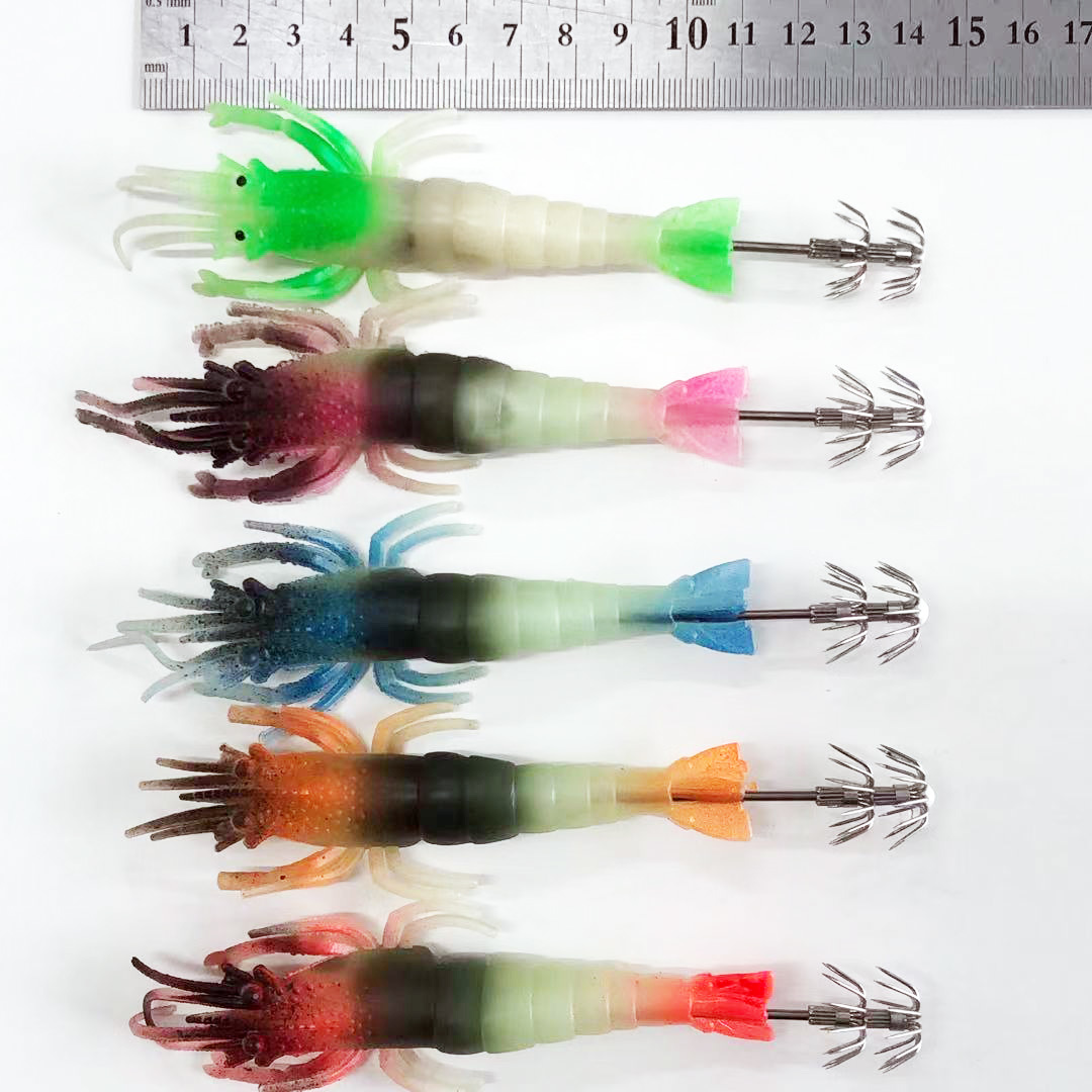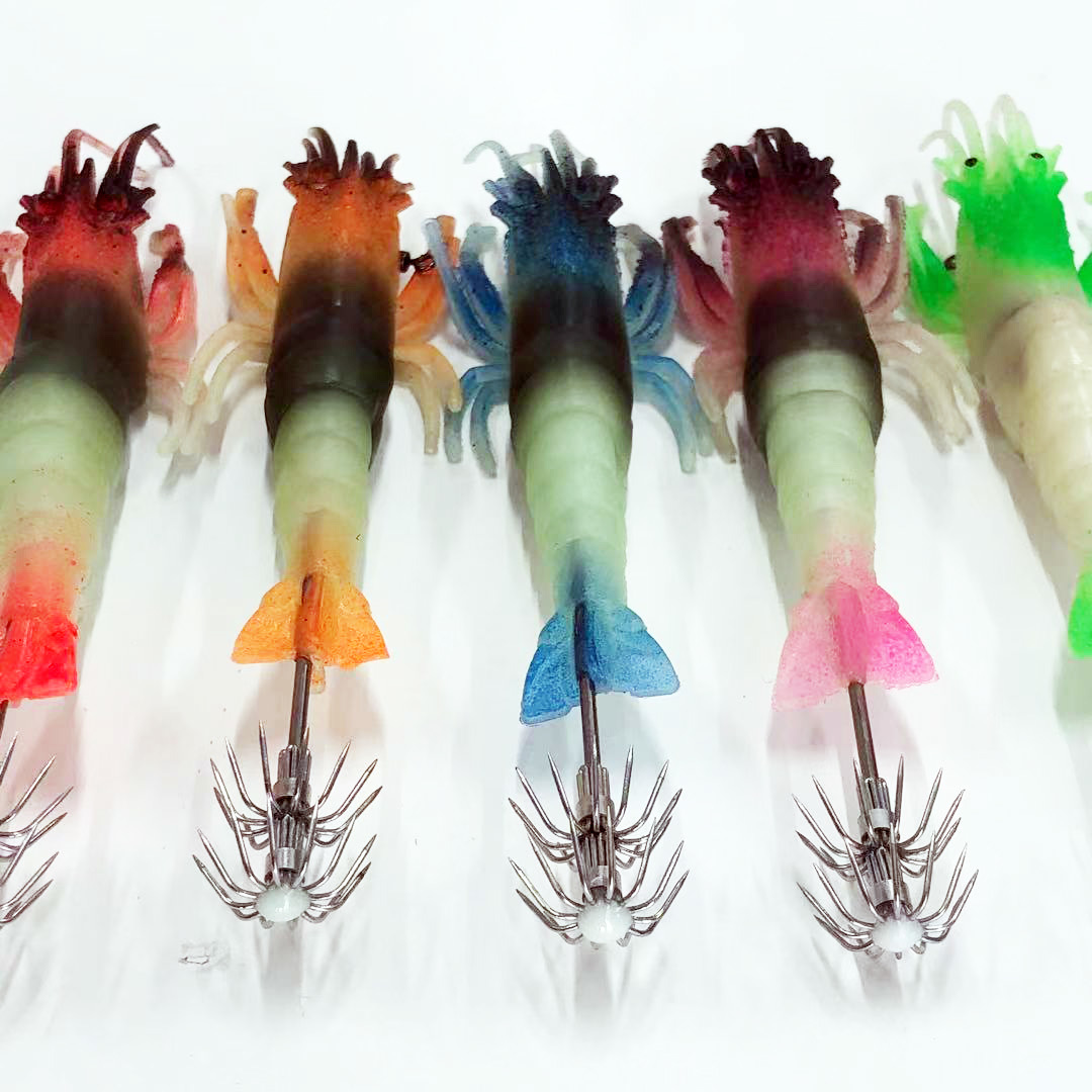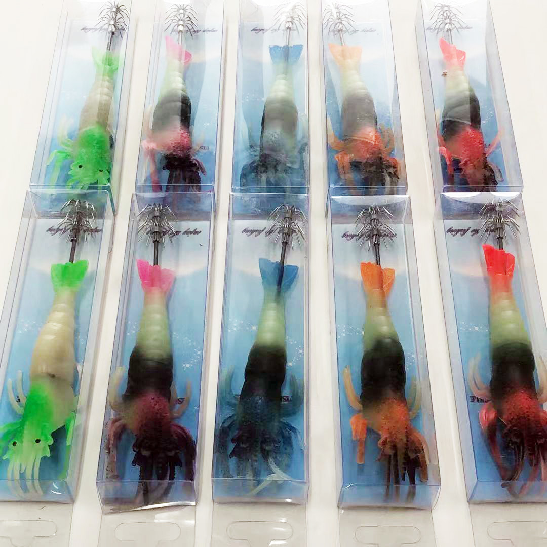 烏賊釣り用 疑似餌 ソフトえび 10本 2段釣り針 イカ釣り 仕掛け セット 訳有 未使用品 wksoftebi10-3