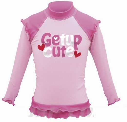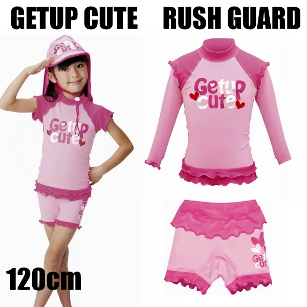 GETUP CUTE 長袖&ショート 上下ラッシュガードセット ピンク 120cm 女の子 子ども用 上下セット