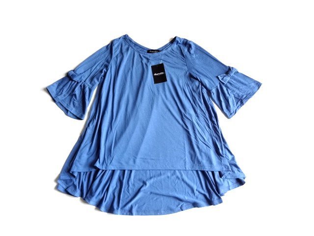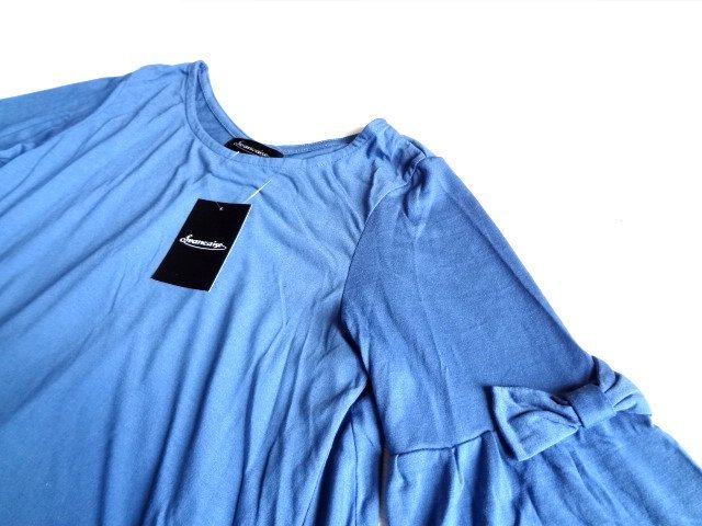 新品 francaise テールカット 袖リボン Tシャツ チュニック 青 レディース トップス