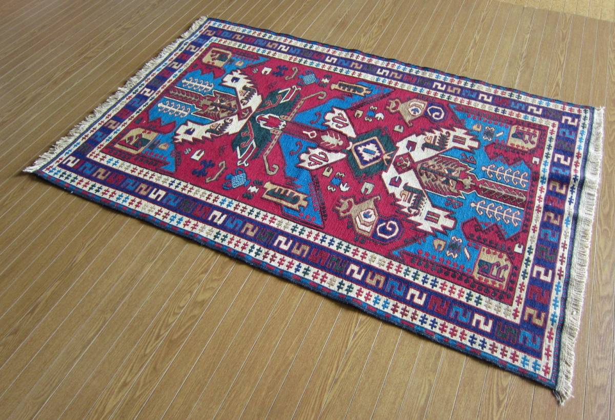 商品説明 | ★素材 : ウール・手織り・スマック織り ※スマック織りとは、イランのキリムの織り方の技法です。 土台の縦糸と横糸の上にもう一本横糸を絡めるように 巻き込んで織っていく高度なテクニックで、 刺繍のように細かな文様を描けることができます。 スマック織りは裏面に模様の糸を渡してあるので 片面使いのキリムになります。 ★サイズ : 約 152×102 cm (房を含まない長さです) ★産地 : イラン・アゼルバイジャン ★状態 : 新品 kxpgs342+ZIBACARPET絨毯 kxpgs342+ZIBACARPET取扱いペルシャ絨毯 FARSHEZIBA_KILIMキリム |
