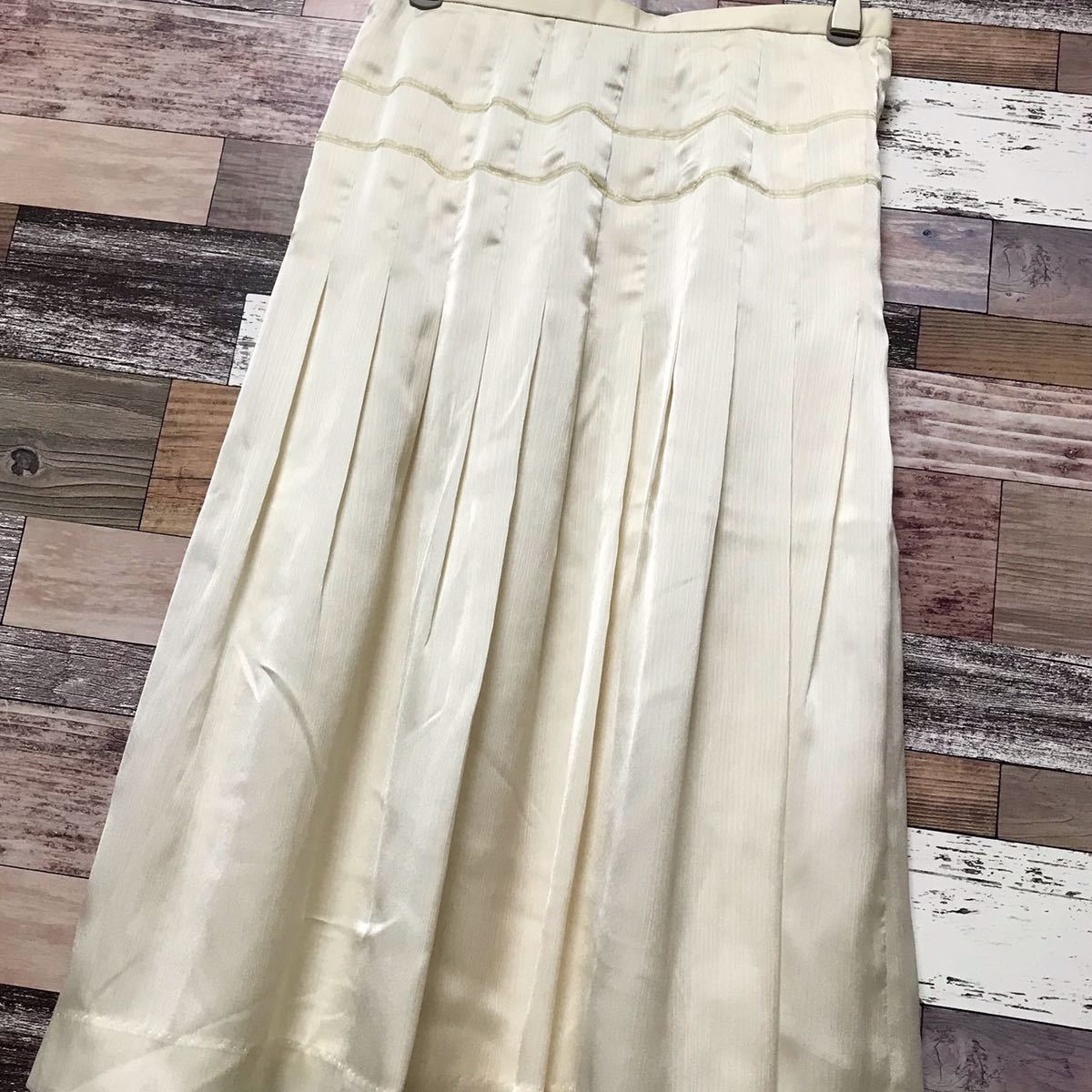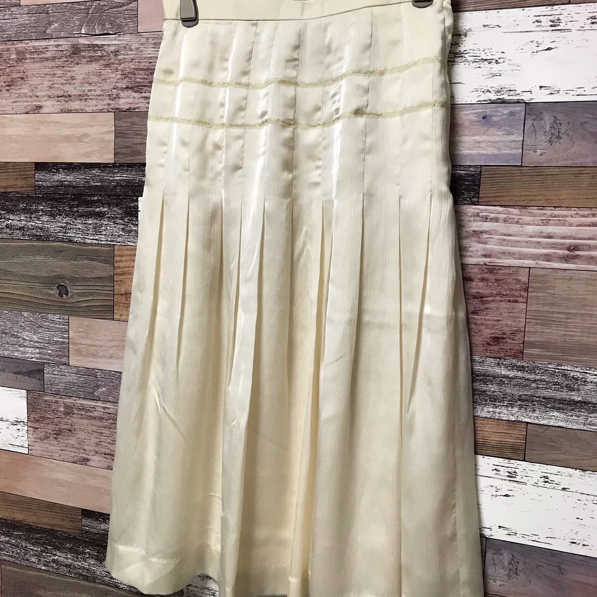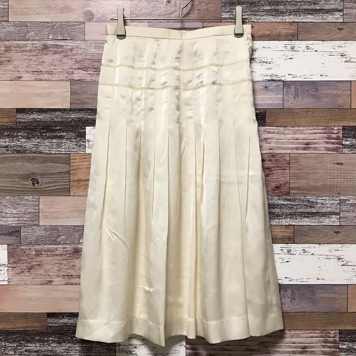 ピエールカルダンのスカートです。サラッとした肌触りの良い生地に入るプリーツが女性らしく綺麗なシルエットで末永く着用していただけるかと思います。