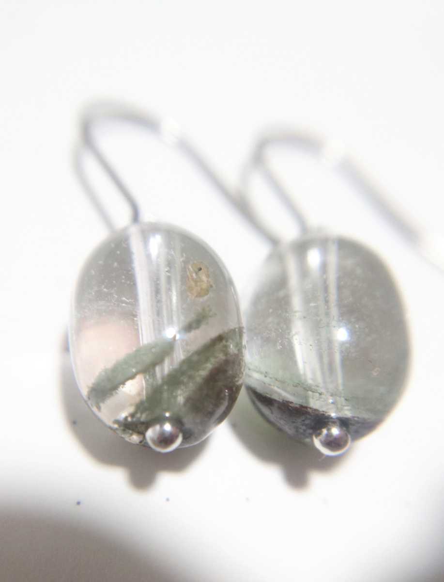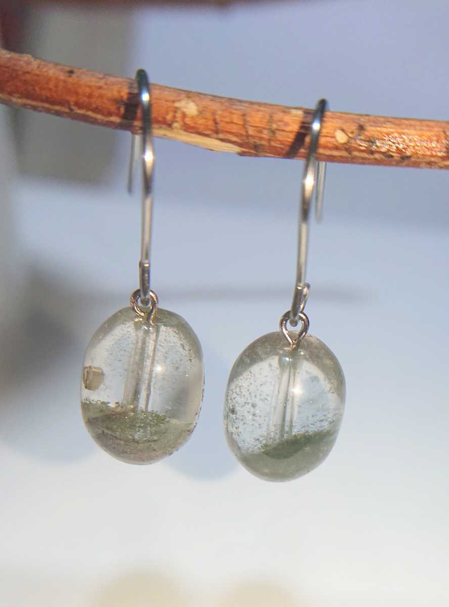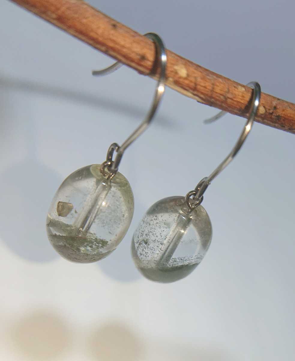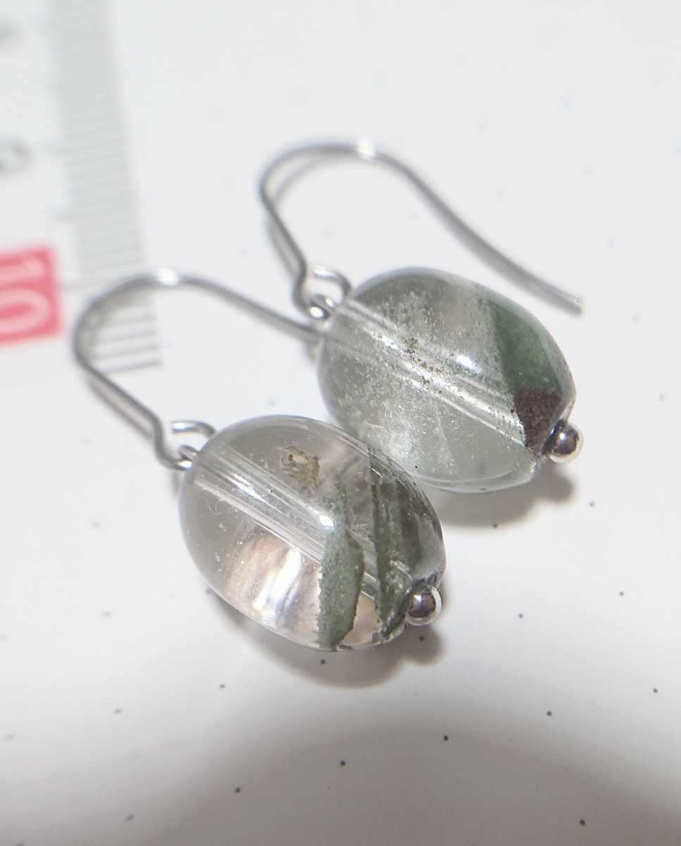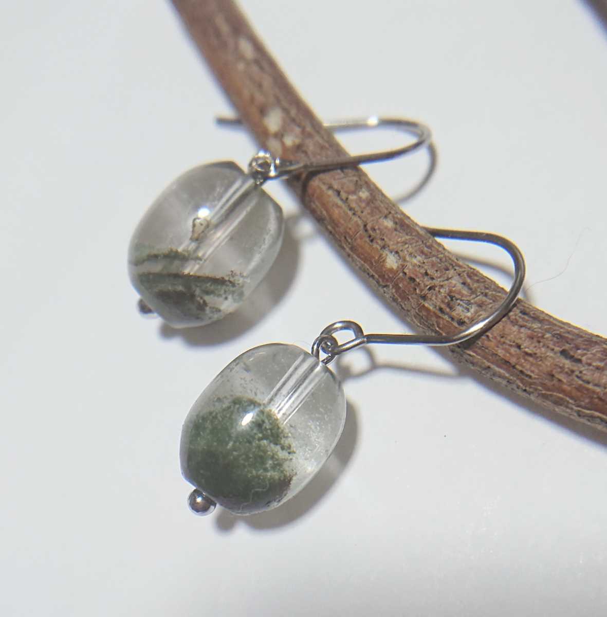 水中の藻を眺めているようなガーデンクォーツのピアスです。