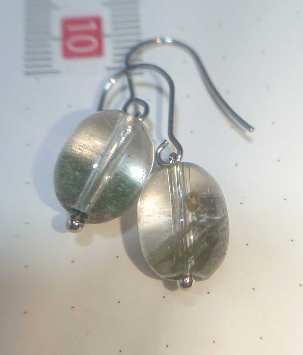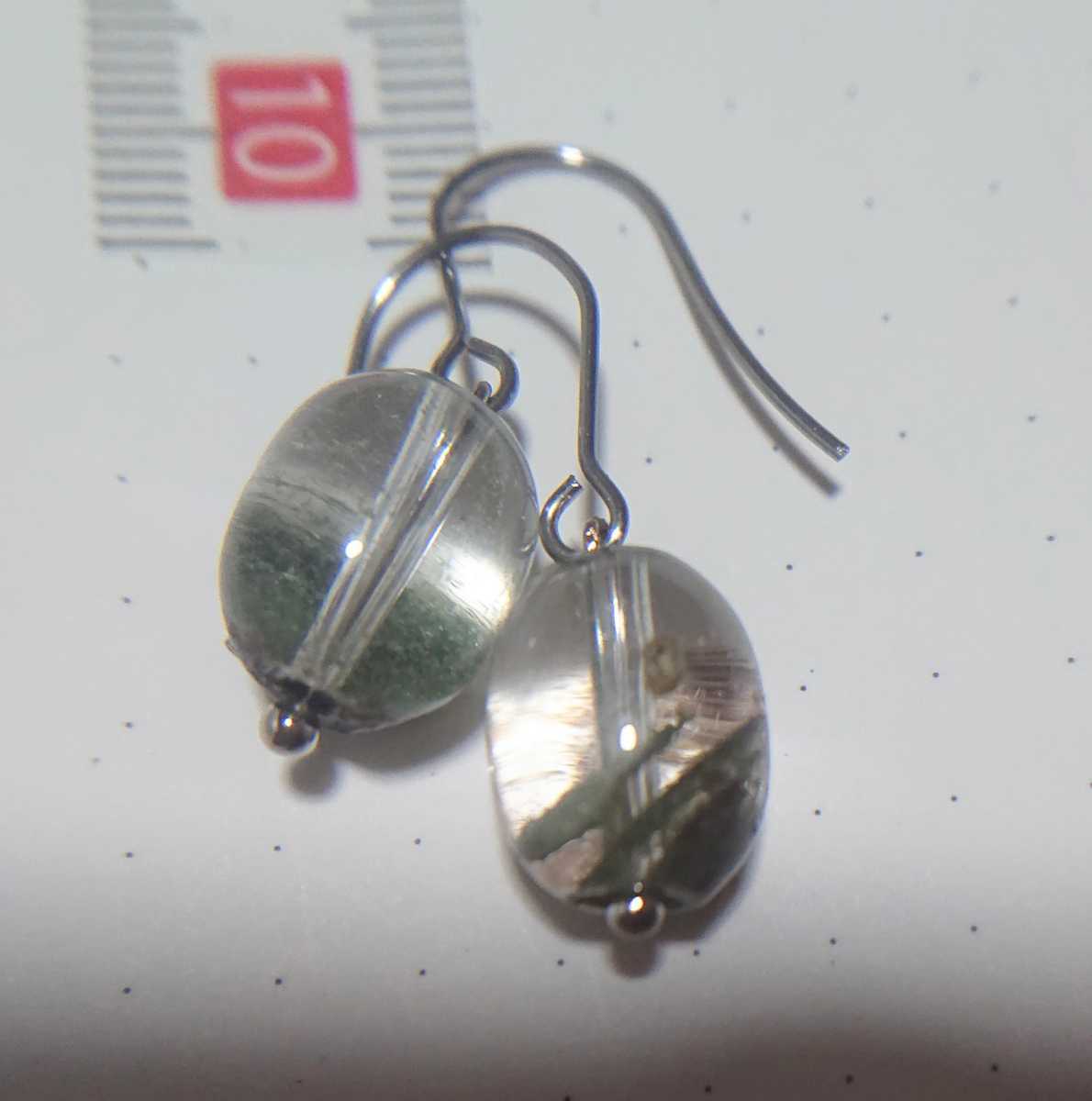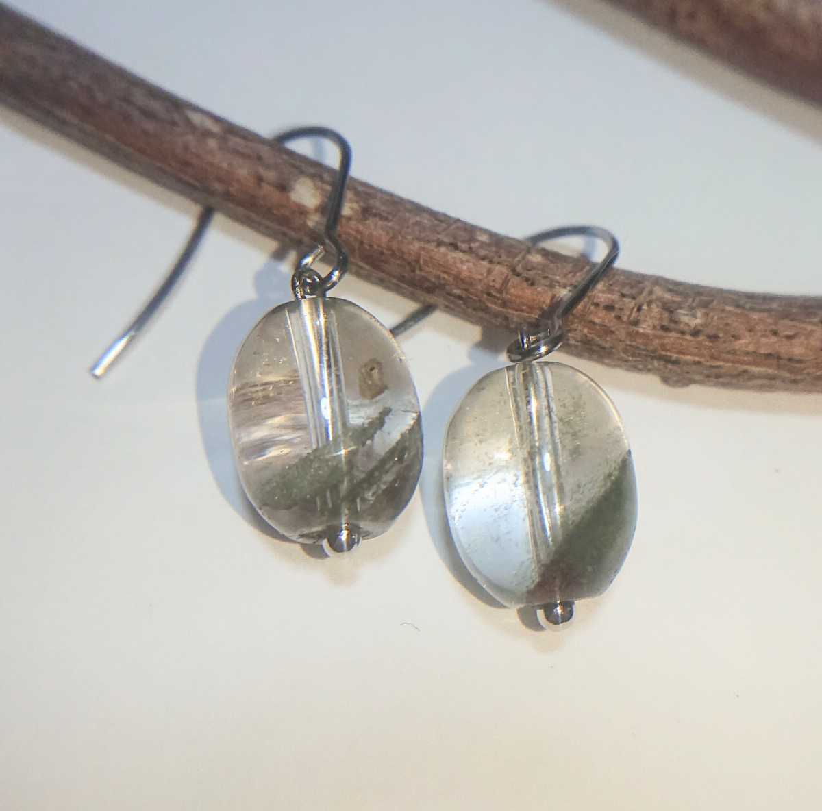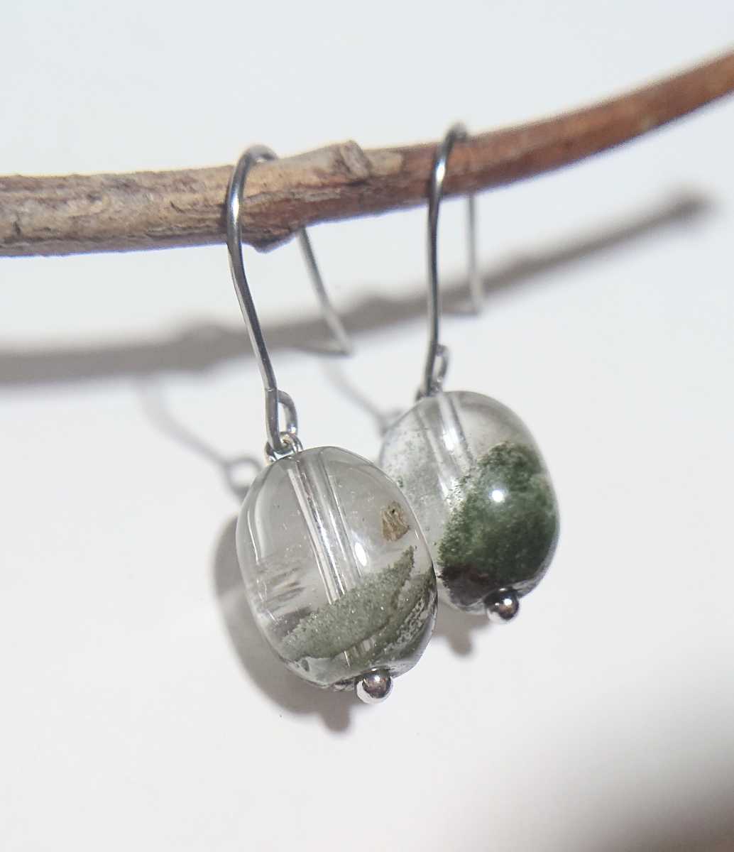 水中の藻を眺めているようなガーデンクォーツのピアスです。
