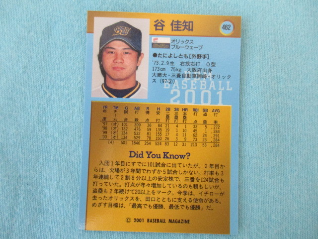 ★BBM 2001★〔462 谷佳知 オリックスブルーウェーブ〕サイン(印刷) トレカ♪