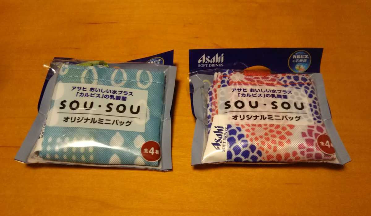 アサヒ おいしい水プラス カルピスの乳酸菌の販促品 SOU・SOU オリジナルミニバッグです。雫と菊づくしのデザインになります。 どちらも未開封です。よろしくお願いします。