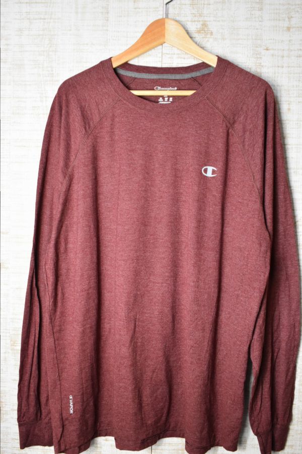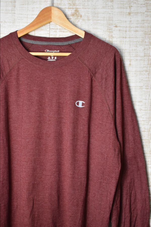 ●US USED ビッグサイズ US古着 Champion チャンピオン ロンT 長袖Tシャツ エンジ赤系【XL】