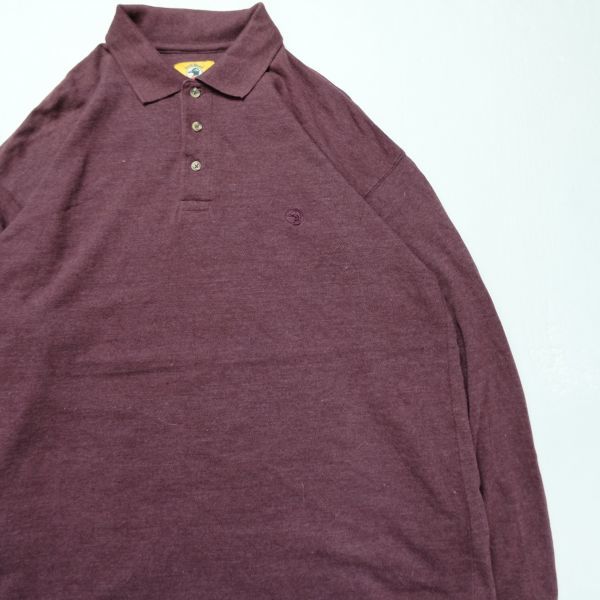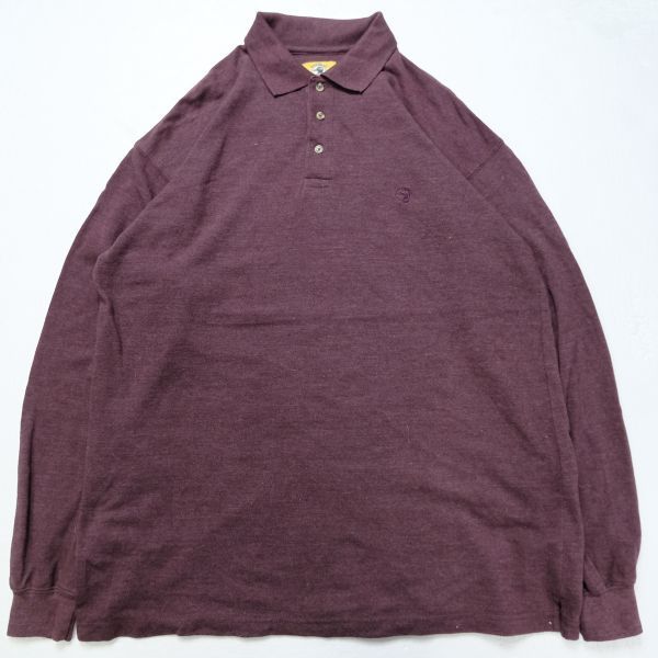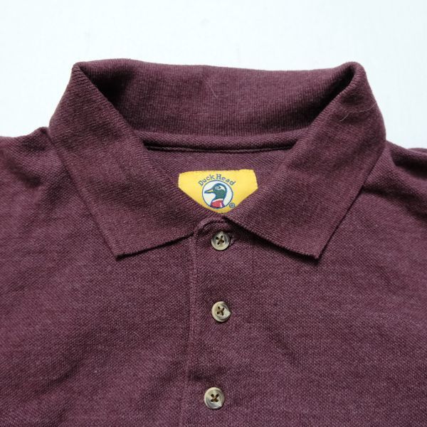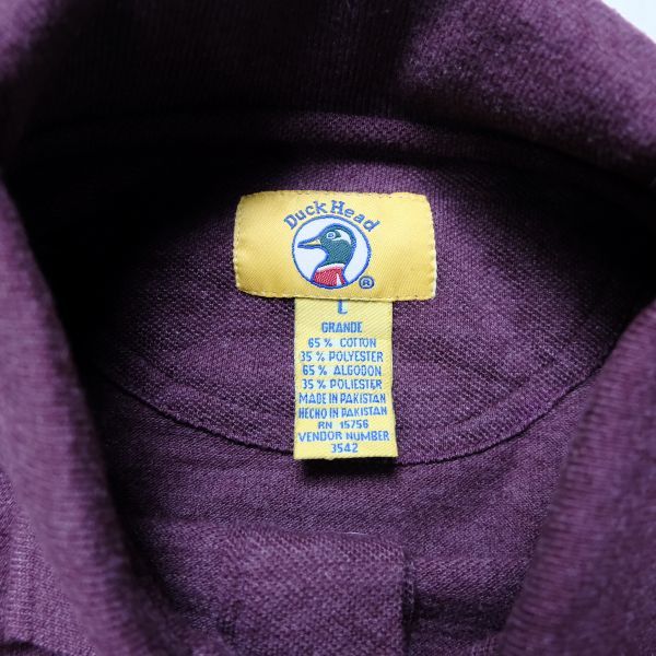 90's 00's ダックヘッド ロゴ刺繍入り 鹿の子 ポリ コットン ポロシャツ 長袖 (L) 紫系 90年代 00年代 旧タグ オールド Duck Head