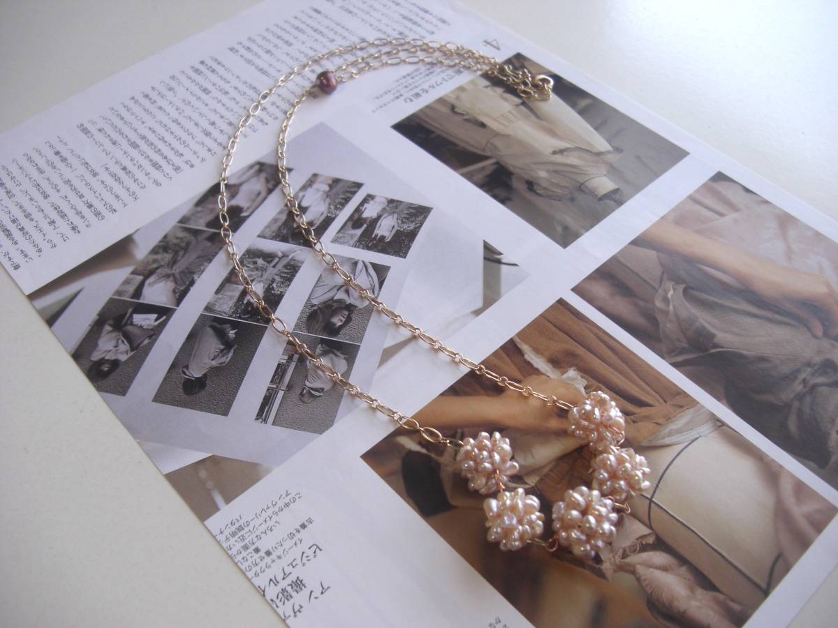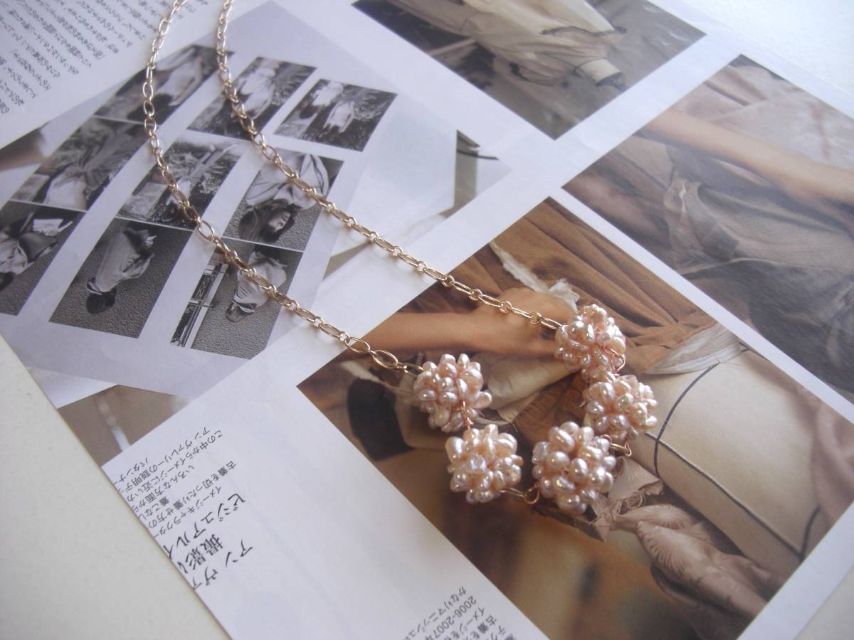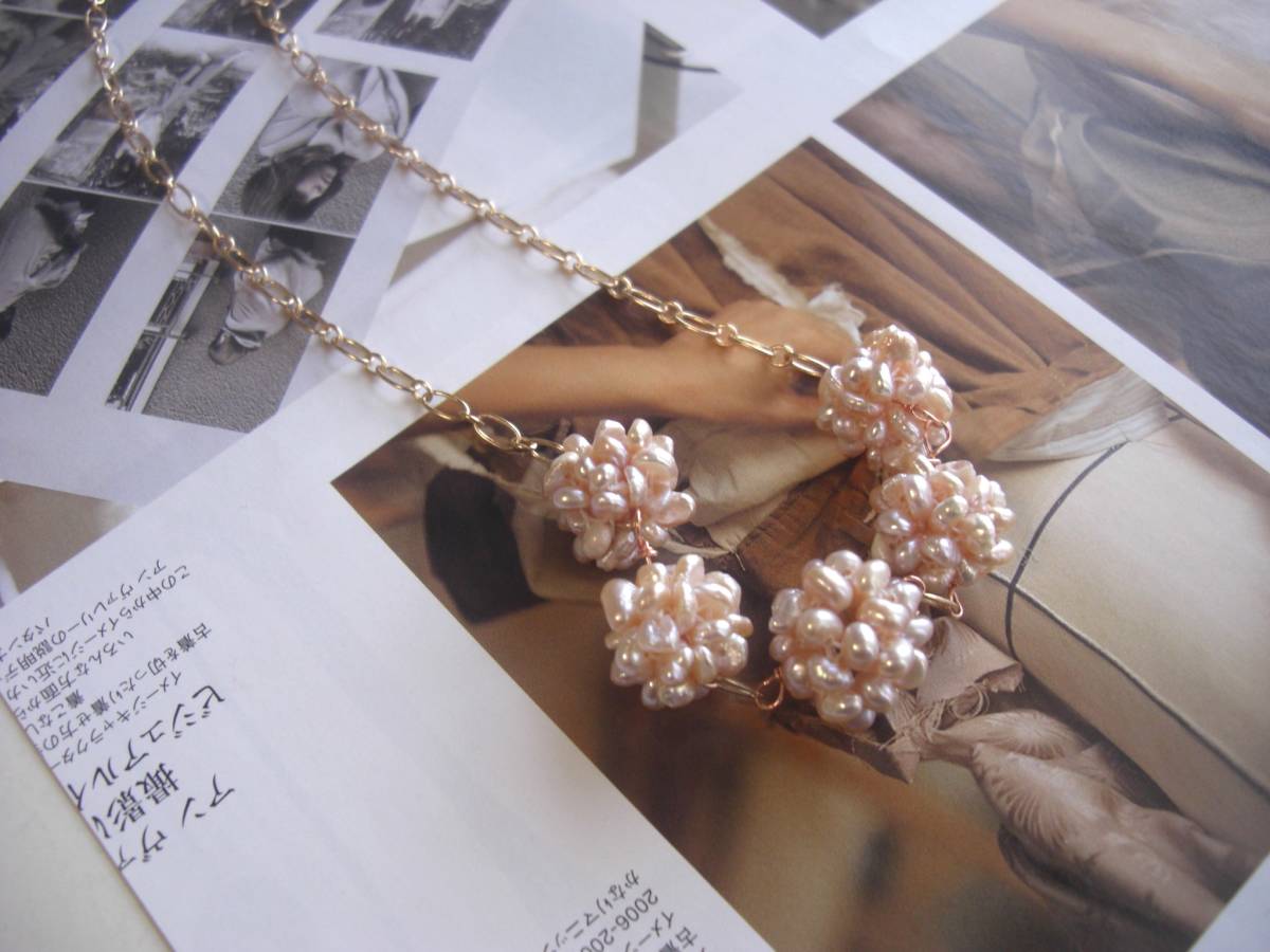 お揃いコーデ・・シリーズです♪やさしいピンクの小さなパール・・やさしいピンクの淡水パール玉のネックレスです♪15ミリから18ミリの淡水パー ル玉にピンクゴールドのチェーンに繋いで可憐な表情です♪ネックレスの長さは全長80センチで調節自由です♪シンプルで飽きのこないいつまでも着けられ るデザインを考えて作りました!ハンドメイドをご理解頂いてノークレーム、ノーリター ンでお願いします