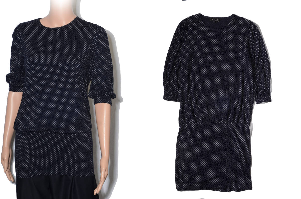 美品。アニエスベー ドット ストレッチカットソー素材 切り替えワンピース 1 2点ご落札で送料無料