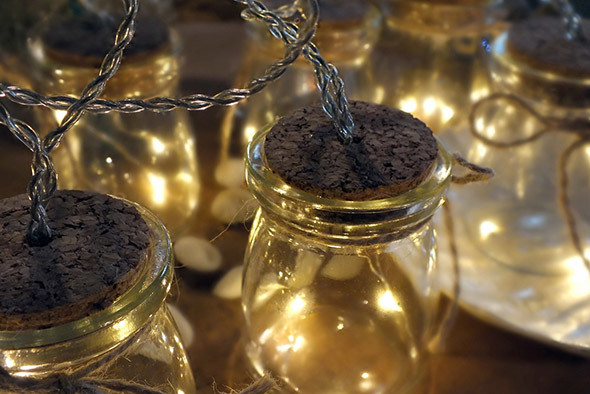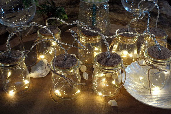 可愛いガラスの小瓶が8個つながったLEDパーティーライトデコレ☆