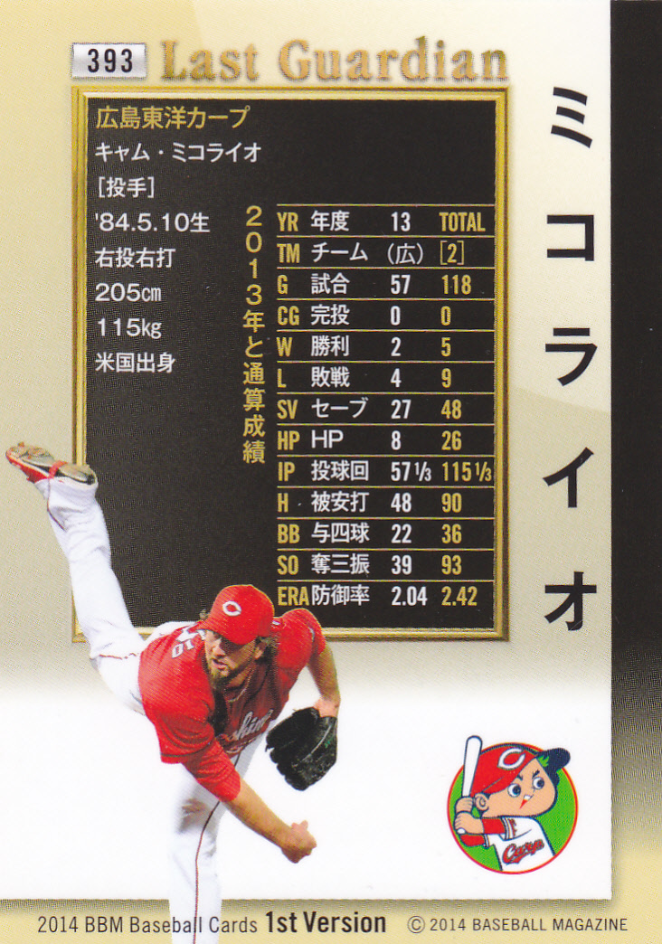 BBM2014ベースボールカード1st 393 キャム・ミコライオ 広島東洋カープ 助っ人