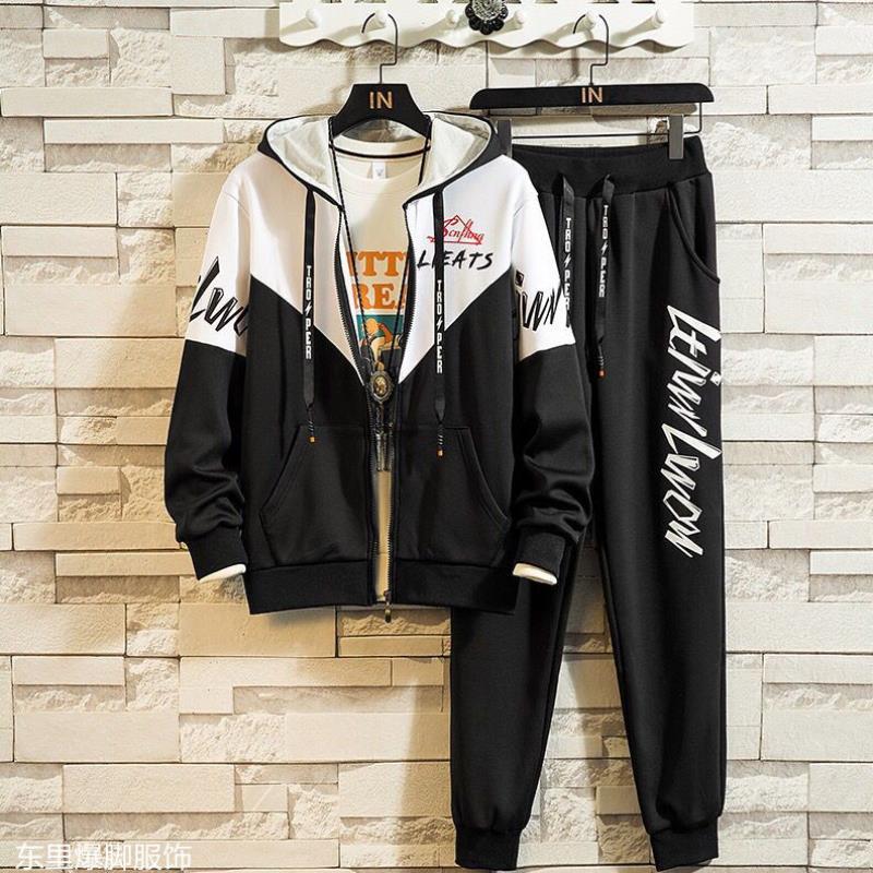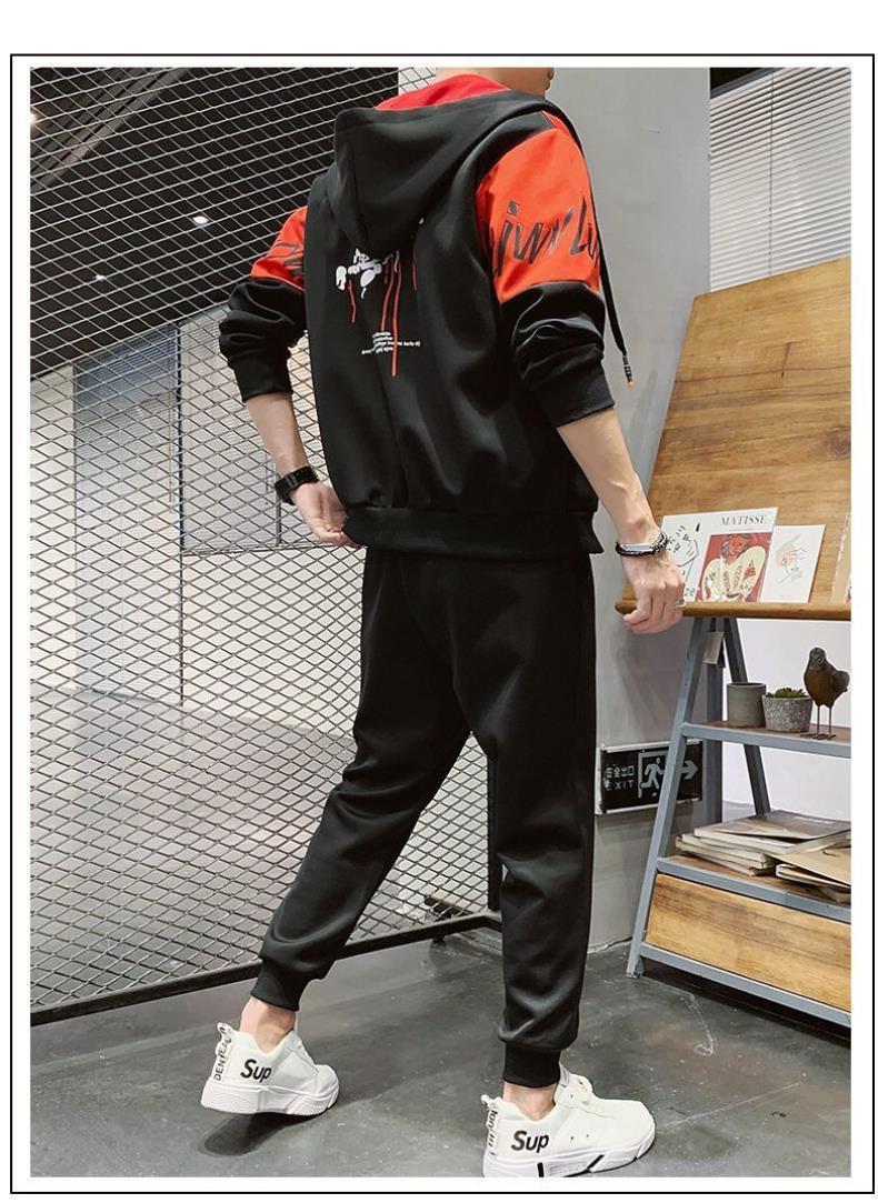 メンズ スウェット トレーニングウェア セットアップ 上下セット ジャージ 春秋 スポーツウエア パーカー トレーナー 黑B S~4XL