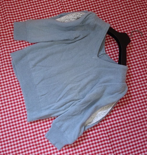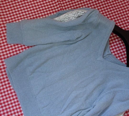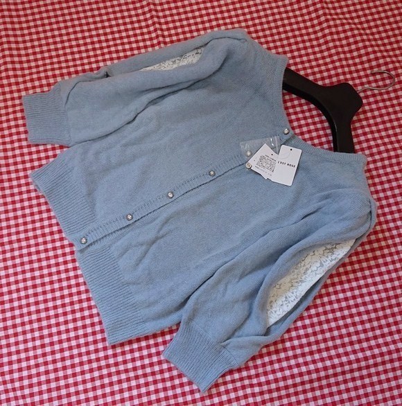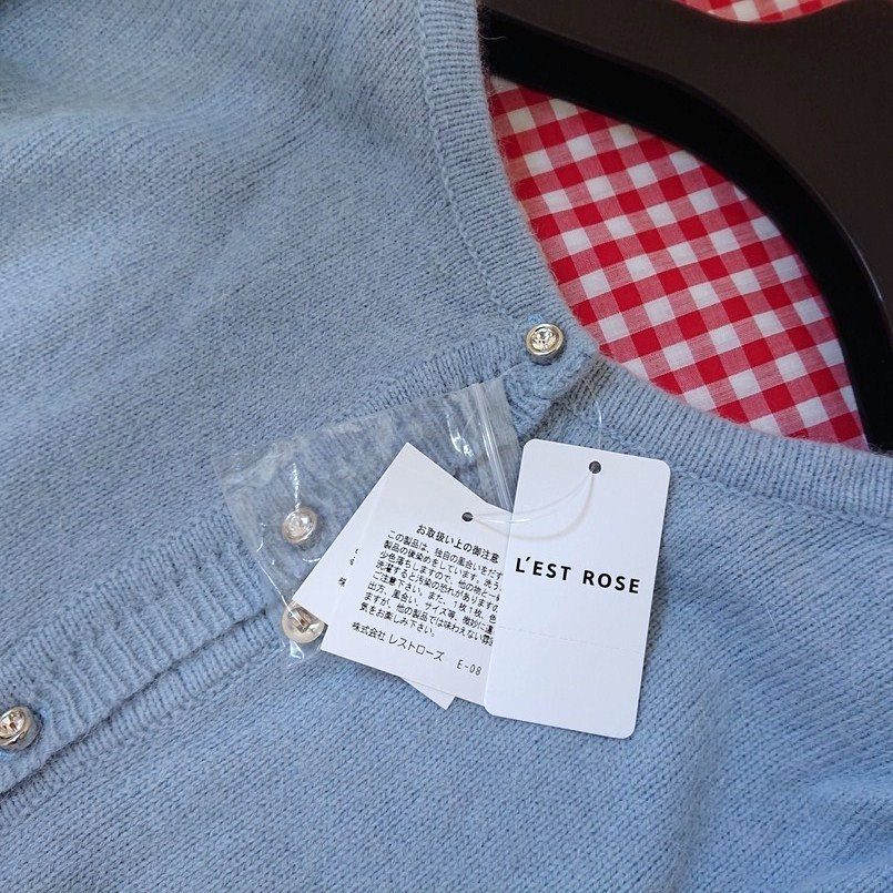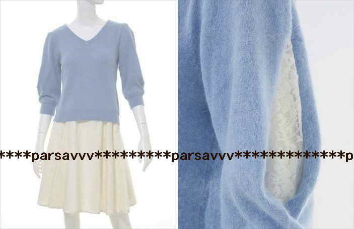 新品紙タグ付き*レストローズ*袖 レース 切替 ビジュー 2WAY ニット カットソー & カーディガン 2ブルー