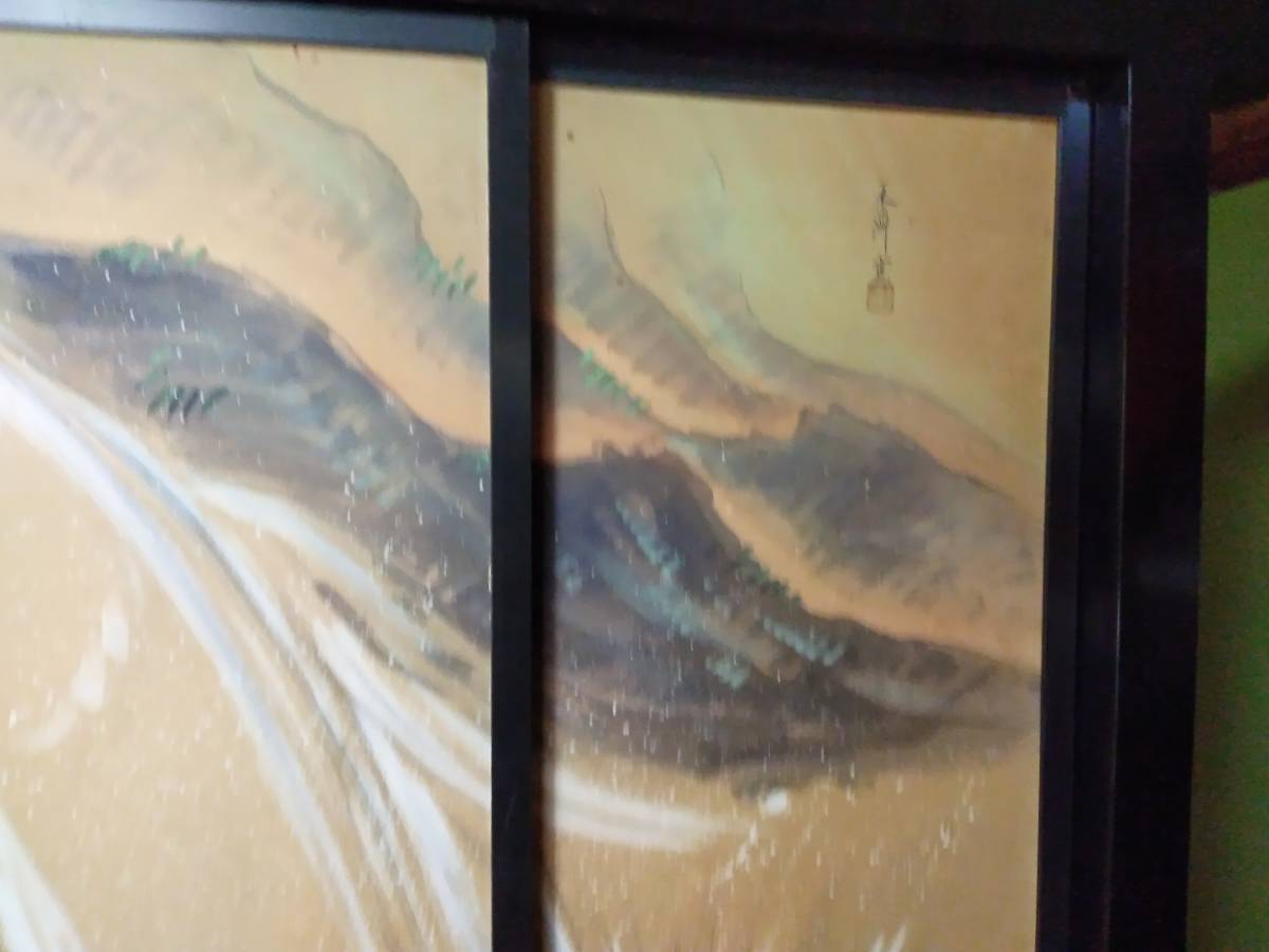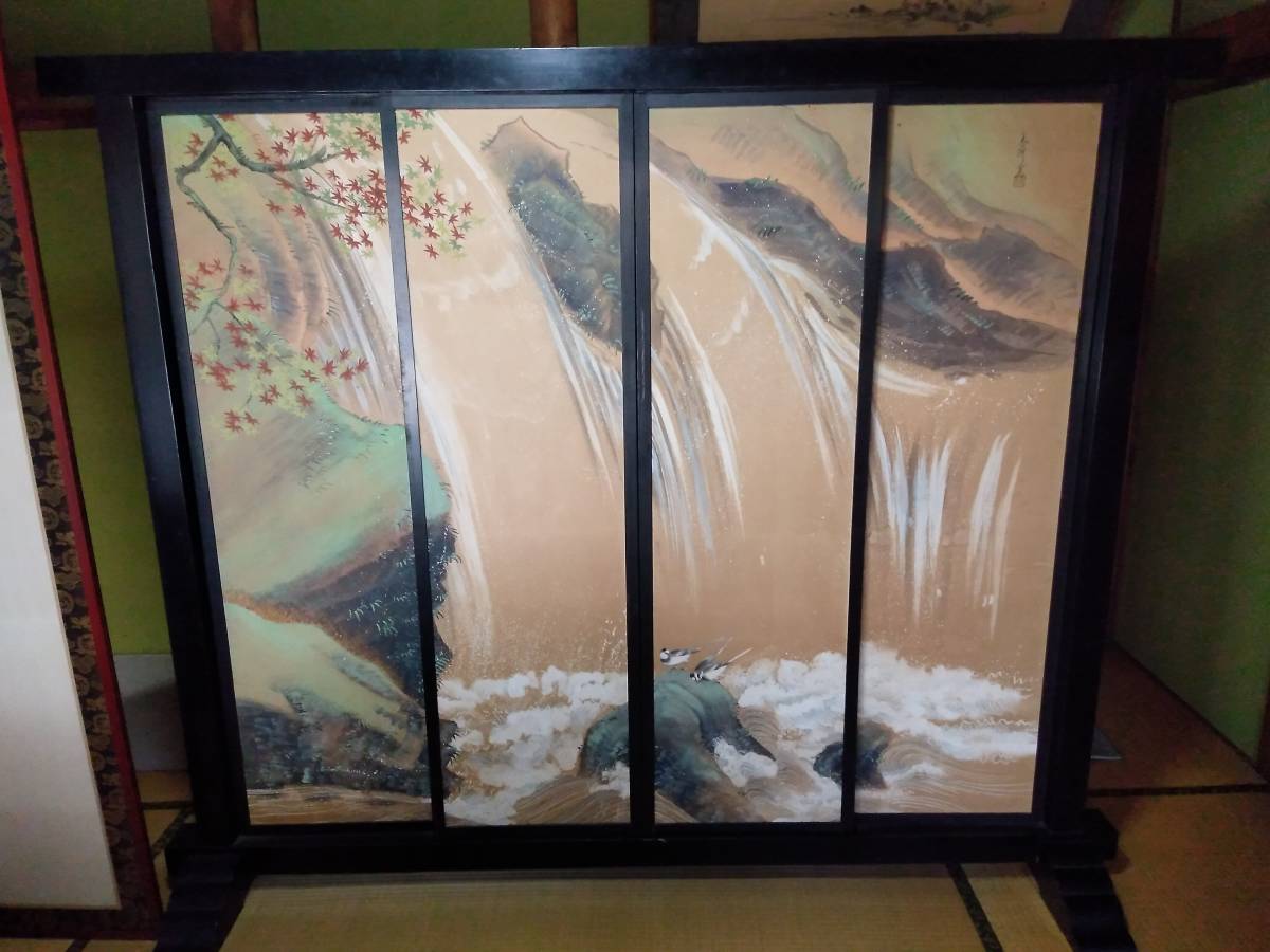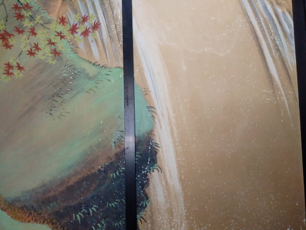 大型で大変立派な衝立です。紙本に肉筆、香洲筆の鳥図です。襖のような扉になっていて開け閉めできます。古い物になりますので、シミ、枠のすれ傷等ございます。ご理解の上でお願いします。サイズは