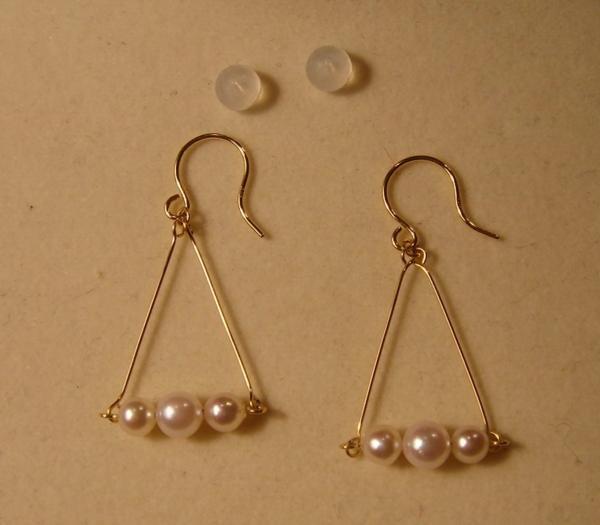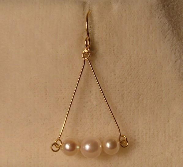 可愛い3~4mmの真珠3ピースを地金の線に通し、耳元で揺れるように仕上げました。