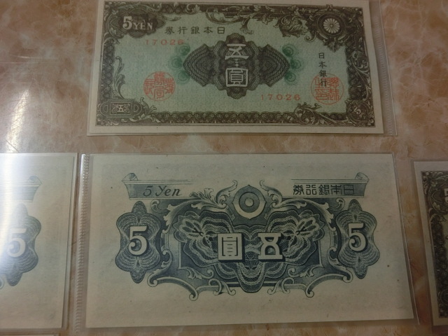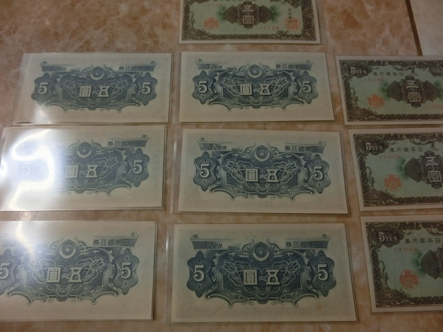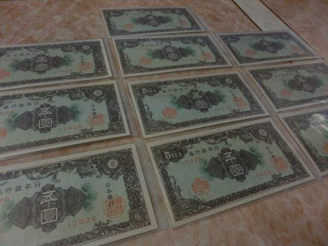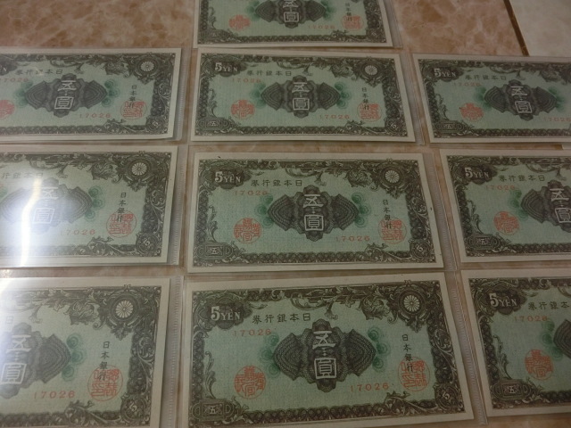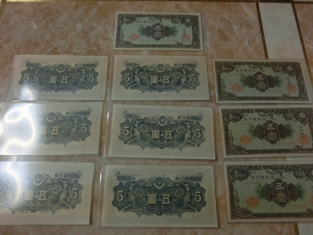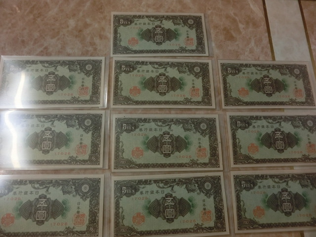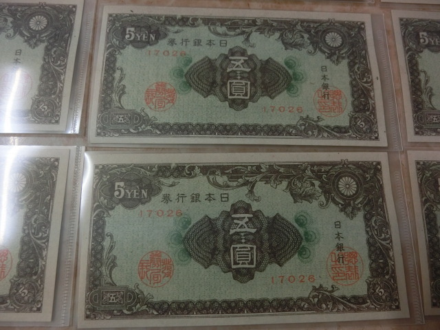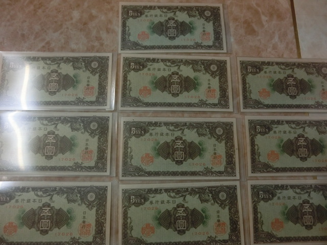 日本銀行券A号5円 彩紋5円の小田原印刷工場の未使用を10枚です。