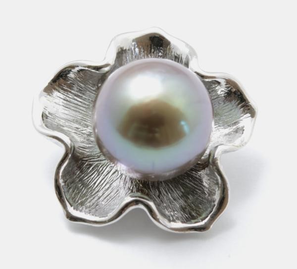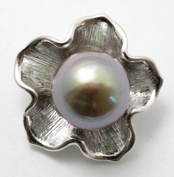 タヒチ黒蝶真珠フラワーモチーフペンダントトップ SV925