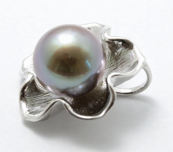 南洋 タヒチ 黒蝶 真珠 フラワーモチーフ ペンダントトップ SV925