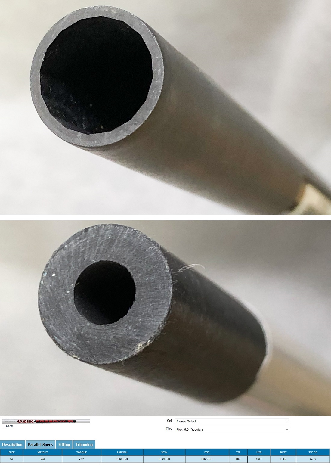 画像にもありますように、マトリックス社が特許を持っている内部16角形構造を採用し、非常に剛性の高いシャフトです。