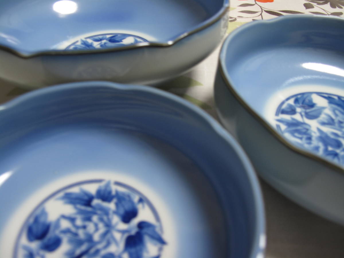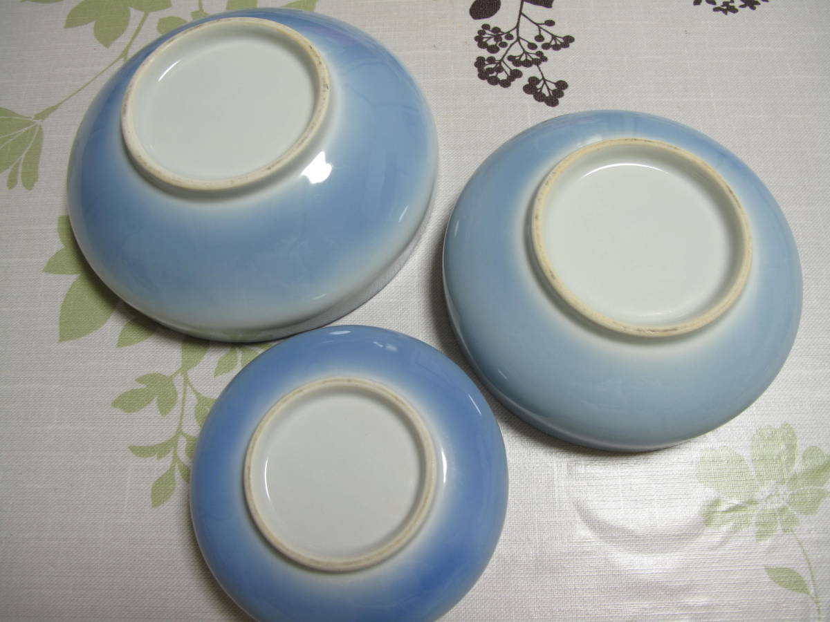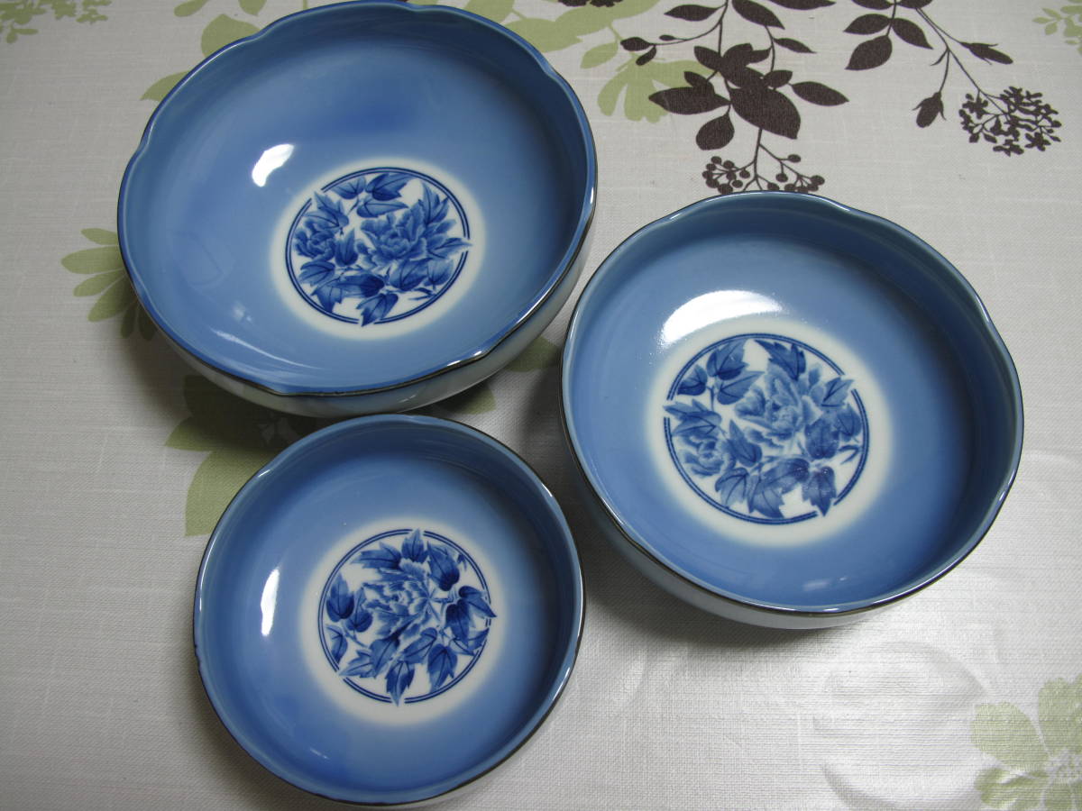 美品 3枚セット 盛皿 深皿 盛鉢 大 中 小 青