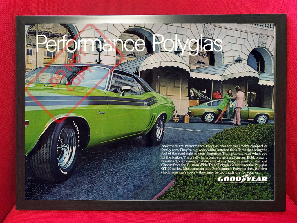 Good Year 1971 Dodge Challenger "Performance Polyglas" Advertising Poster AD4-11 1971年のグッドイヤーのビンテージ広告『Performance Polyglas』のリプロダクションポスターです♪ Green Goの71 ダッジ・チャレンジャーRTがCoolです♪ ポスターサイズ:42cm × 29.7cm (額は付属しません。ポスターのみの出品です。額はA3サイズ用がピッタリです) こちらのポスターは高品質で厚みのあるアートペーパーに美しくプリントされたもので非常にハイクオリティなモノです。クラフト紙や布にプリントしたような粗い画質ではありません。存在感があり、しかも飾るのにも困らない絶妙なサイズですので、お好みのフレームに入れディスプレイするのにも最適です。また、しっかりとした厚みのあるポスターですので、そのまま無造作に壁などにピンでとめるディスプレイのスタイルもおススメです。 趣味の部屋・ガレージ・カフェ・ショップ・Bar・オフィスなどに! ※60's・70's・80'sを中心にマニアックな映画・旧車・バイク・音楽バンド関連などの様々なポスターを多数出品中ですのでチェックしてみてください! Click→映画関係ポスター Click→音楽関係ポスター Click→自動車関連ポスターA Click→自動車関連ポスターB Click→オートバイ関連ポスター Click→その他ポスター | ||