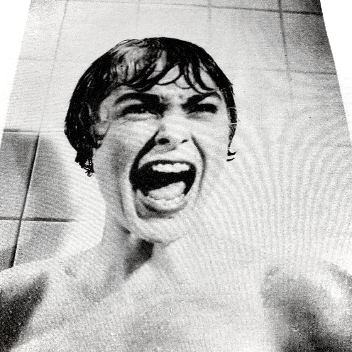 アルフレッド・ヒッチコック監督による1960年公開、全編モノクロー映像のサイコ・スリラー系のサスペンス映画『サイコ』の印象的な迫力シャワーシーンフォトデザイン。
