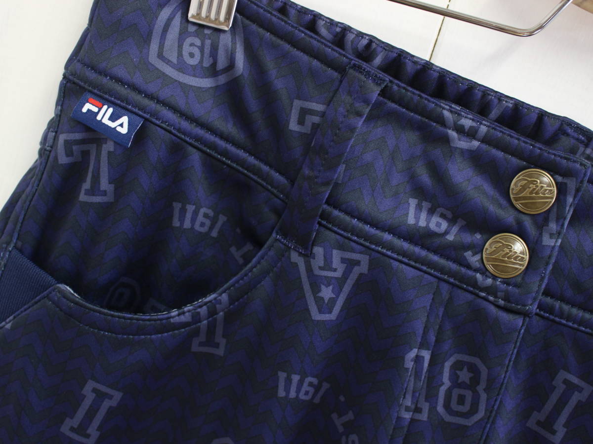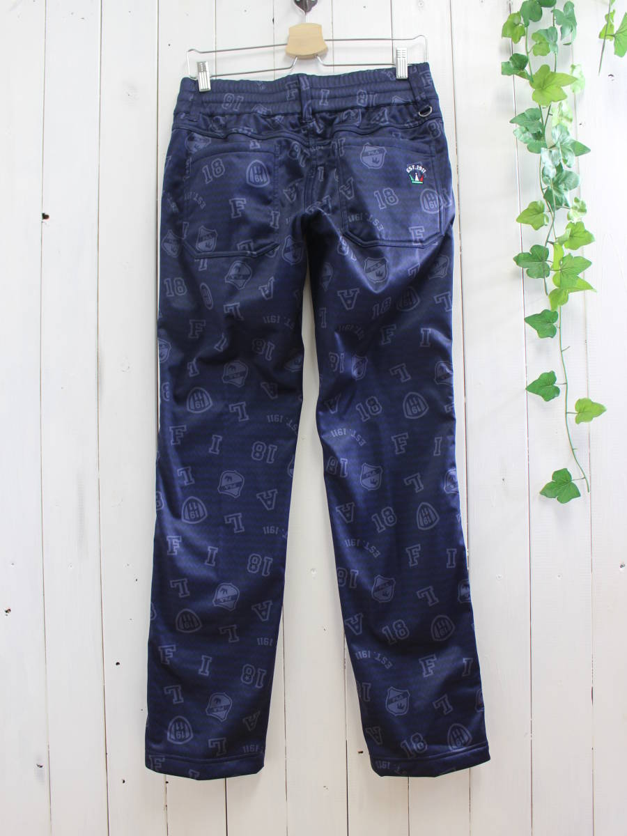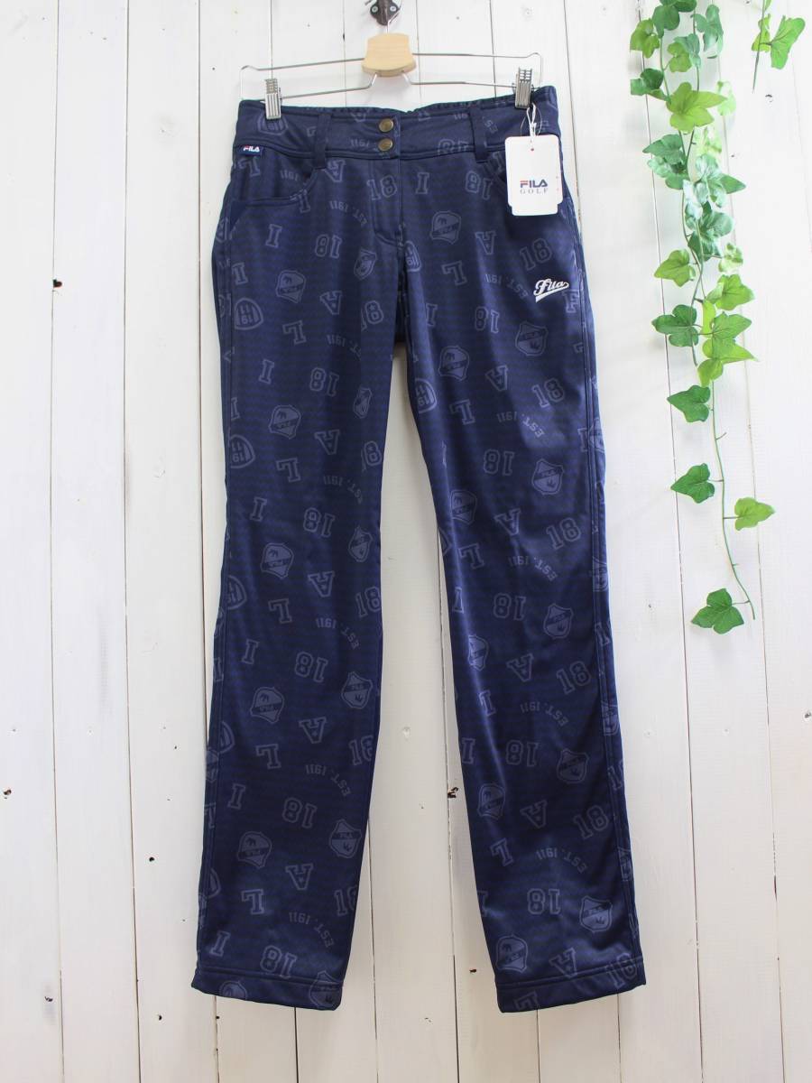 新品*FILA GOLF/フィラゴルフ*防寒防風 ストレッチ ボンディングパンツ 総柄 レディース(L) 定価8,900円/スポーツウェア 紺