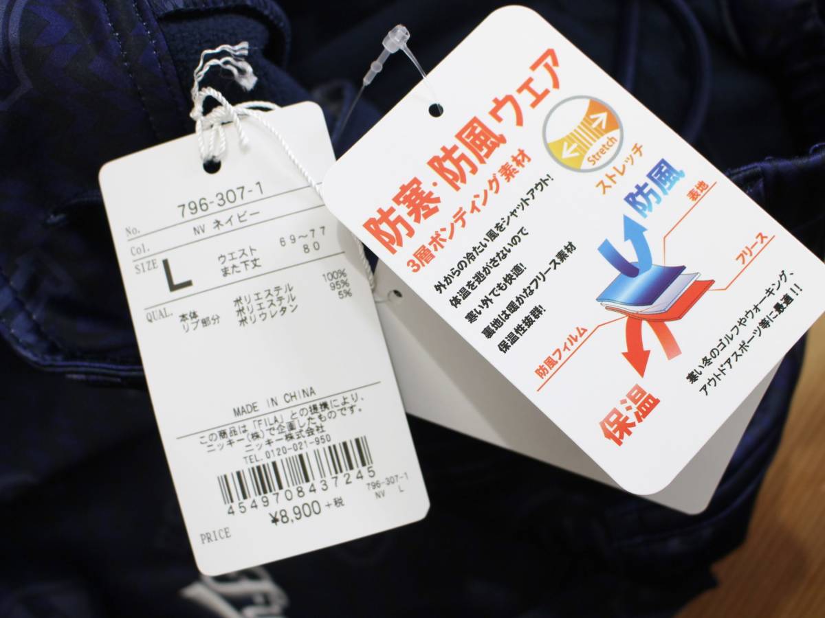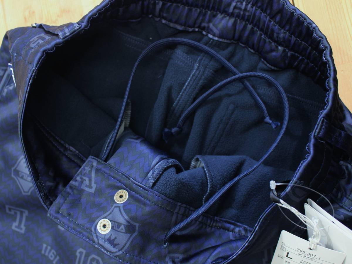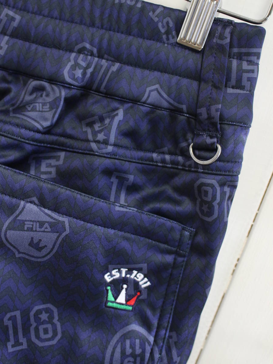 新品*FILA GOLF/フィラゴルフ*防寒防風 ストレッチ ボンディングパンツ 総柄 レディース(L) 定価8,900円/スポーツウェア 紺