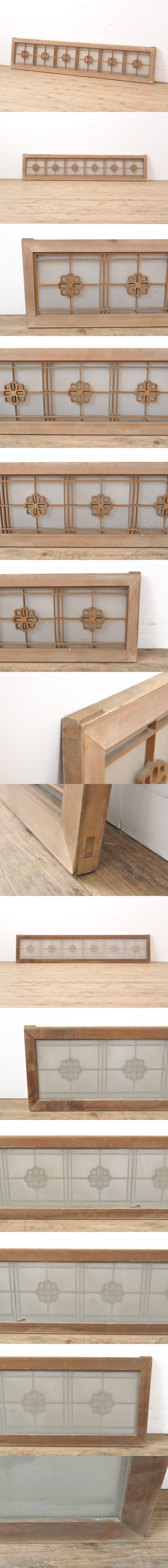 R-055156 和製アンティーク 上品な佇まいが落ち着きのある和を演出してくれるガラス入り欄間(明かり取り、明り取り)(R-055156)