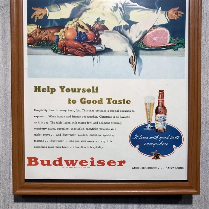 ◆即決◆1948年(昭和23年) Budweiser バドワイザー ビール【B4-6002】アメリカ ビンテージ雑誌広告【B4額装品】当時物/本物広告 ★同梱可