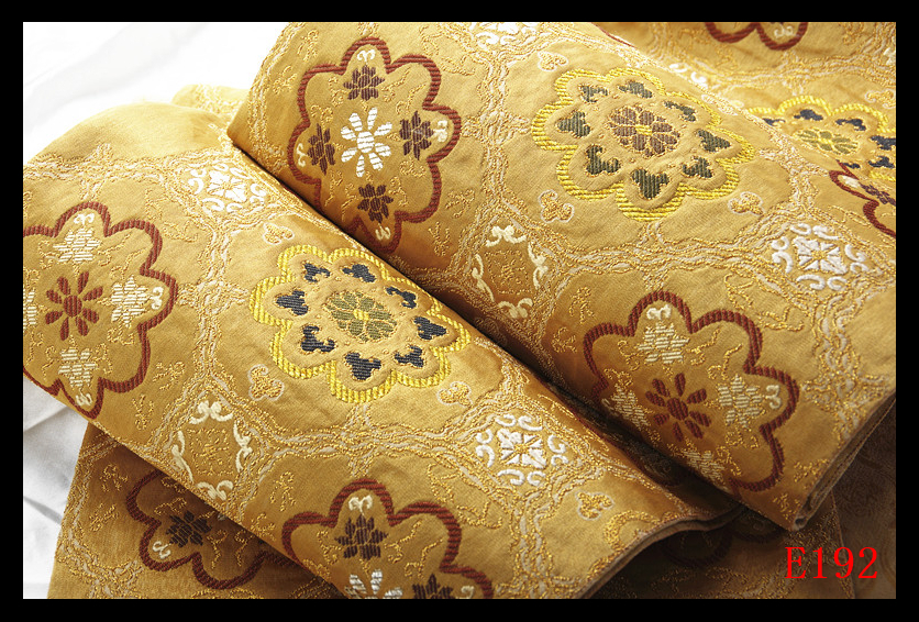 金色の地に蜀江唐花文などの柄が美しく施された袋帯です。
