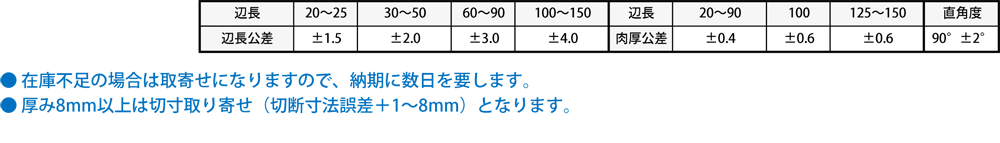 注 材料の移動・切断・加工・配送に伴う擦り傷や歪み等が発生します事、