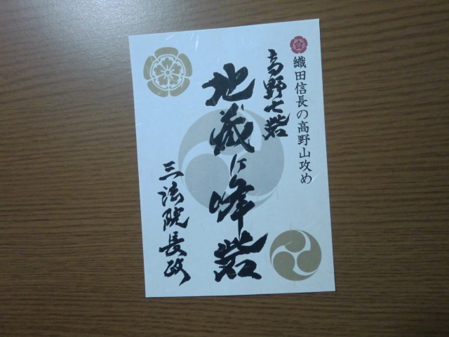 御城印 地蔵ヶ峰の砦 和歌山県 伊都郡です。