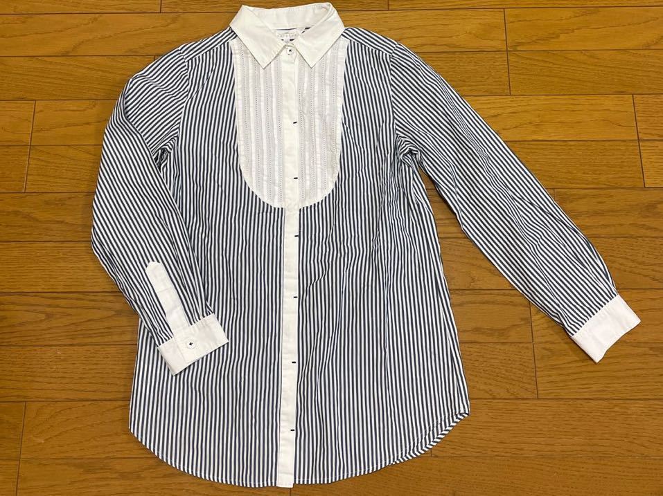 送料無料■組曲 KUMIKYOKU ストライプ ピンタック 長袖シャツ 比翼 小さいサイズ S2(5号)