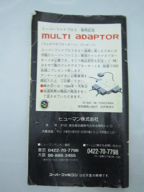 スーパーファイヤープロレスリング3 取扱説明書 スーパーファミコン SFC 説明書